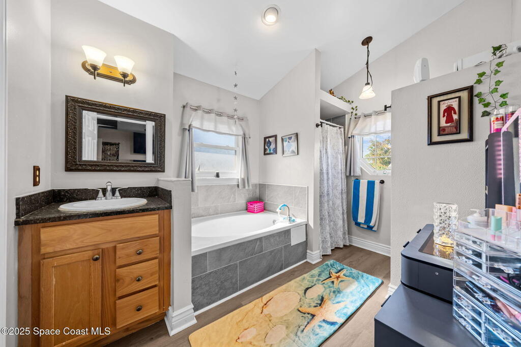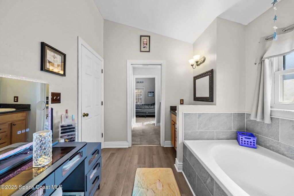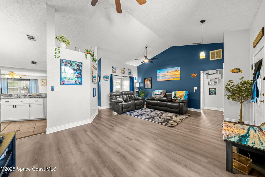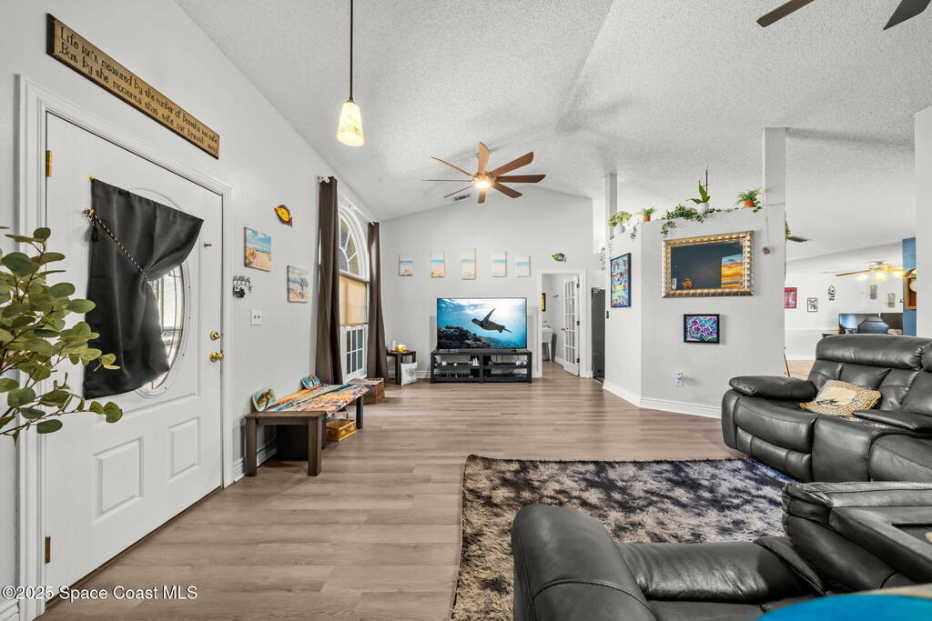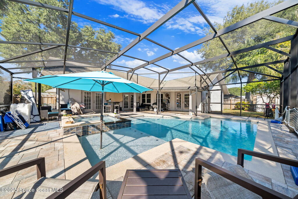 Beautiful 4-Bedroom, 2-Bath Pool Home in the Heart of Titusville!Welcome to this inviting and spacious home featuring an open floor plan, 2-car garage, and charming front walkway. Step inside to find formal living and dining areas that flow seamlessly into a large kitchen and comfortable family room--perfect for gatherings and everyday living.This home offers generously sized guest bedrooms, an indoor laundry room, and a versatile 4th bedroom that can double as an office or den. The main bedroom suite boasts vaulted ceilings, dual vanities, a relaxing garden tub, and a separate shower.Enjoy your fully fenced backyard oasis with lush landscaping and an L-shaped covered porch--ideal for unwinding or entertaining. The sparkling pool completes the outdoor retreat.Located close to shopping, dining, entertainment, beautiful local beaches, and exciting rocket launches, this home truly has it all. Don't miss your chance to make it yours!