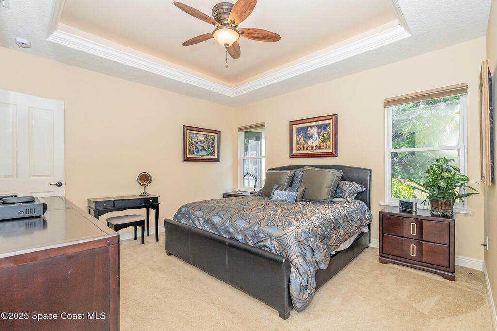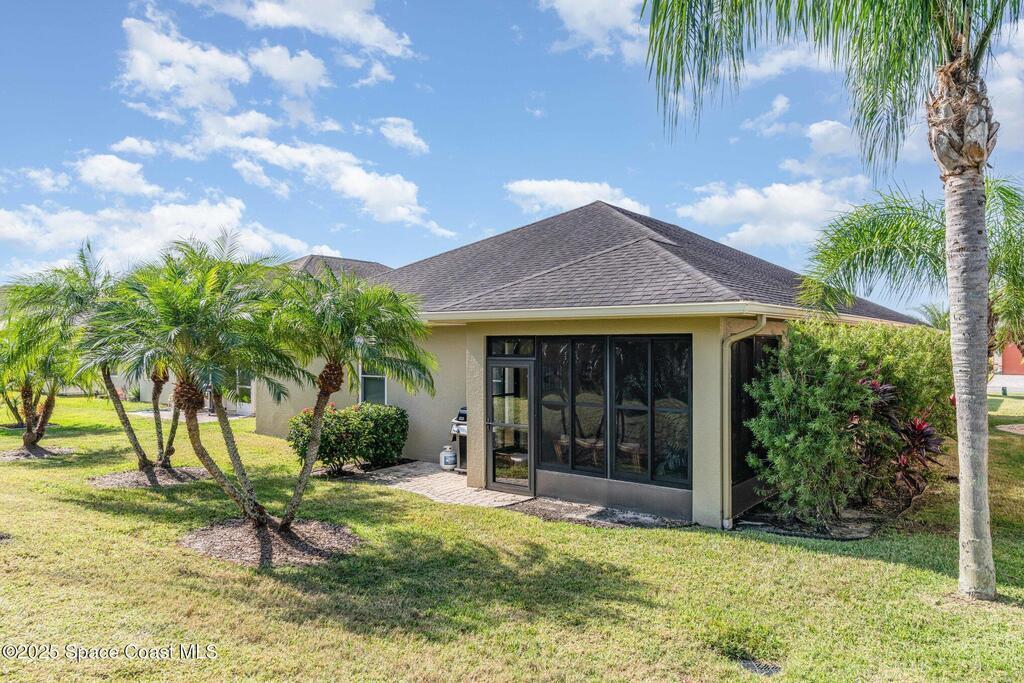 Discover refined comfort in this poured-concrete home featuring full impact glass and doors for unmatched durability and peace of mind. 53' RV Port! This beautifully maintained 3-bedroom, 2-bath residence is surrounded by mature landscaping, offering exceptional privacy from the moment you arrive. A paver driveway welcomes you to an elegant interior highlighted by a newer suite of KitchenAid appliances and a spacious layout designed for effortless living.Relax on the back patio and enjoy stunning views of rocket launches right from home. Additional upgrades include a 2023 A/C replacement for year-round efficiency. As an added bonus, a 2016 Gem Car is included with a full-price offer--perfect for enjoying the Hidden Lakes lifestyle.A rare opportunity to own a true gem in one of the area's most desirable communities.