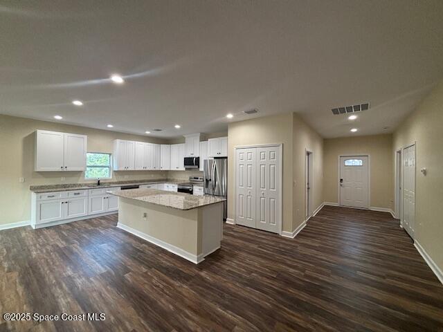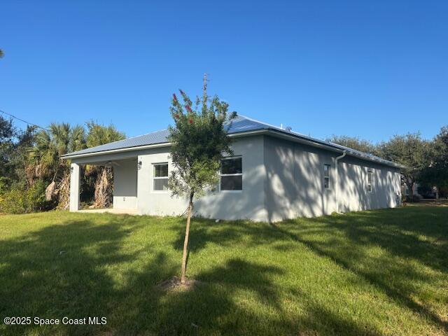 Welcome to this stunning new 1, 925 sq ft single-story home in SW Palm Bay! Enjoy peace of mind with impact windows, a metal roof, and vinyl flooring throughout--no carpet at all. The open floor plan seamlessly blends the living, dining, and kitchen areas, perfect for entertaining or everyday living. The kitchen features granite countertops, stylish cabinetry, and stainless steel appliances including a range, microwave hood, and dishwasher. The spacious primary suite offers a walk-in closet, dual vanity sinks, and a private bathroom. Two additional 12x12 bedrooms provide ample space for family or guests, along with a second modern bathroom. A whole-home water softener system is also included for added comfort. Conveniently located just minutes from I-95 and less than 5 minutes from the brand-new Publix, this move-in-ready home offers the best of modern living in a growing neighborhood. Don't miss your chance to make it yours!