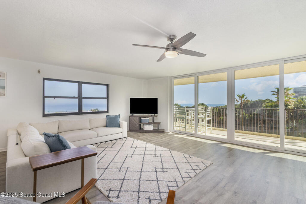 OCEANFRONT CORNER UNIT! Fully furnished and turn-key with new AC, refrigerator, dishwasher, and microwave. Features hurricane shutters, energy-efficient sliding doors, a spacious living room, open-concept kitchen, new living room flooring, and an updated primary bathroom. Enjoy direct ocean access just steps away through a gated private walkway. Building offers secured fob-controlled elevator access, a fully funded association, and completed/approved inspections. Resort amenities include a heated pool, spa, sauna, clubhouse, tennis and basketball courts, pickleball, fitness center, car wash area, and EV charging station. Walking distance to the Cocoa Beach Pier, restaurants, grocery stores, Lori Wilson Park, and Downtown Cocoa Beach. Only one hour to Orlando Airport and major attractions. Relax on the extended balcony and watch rocket launches from home!