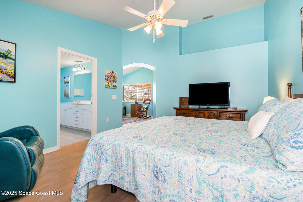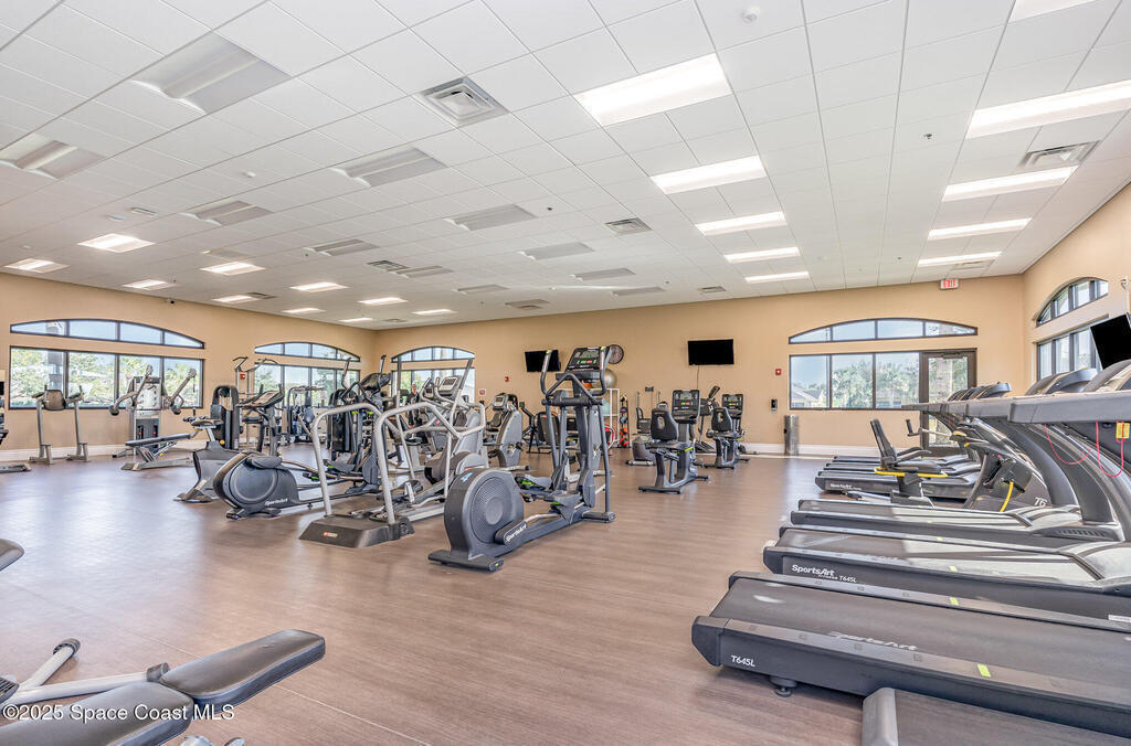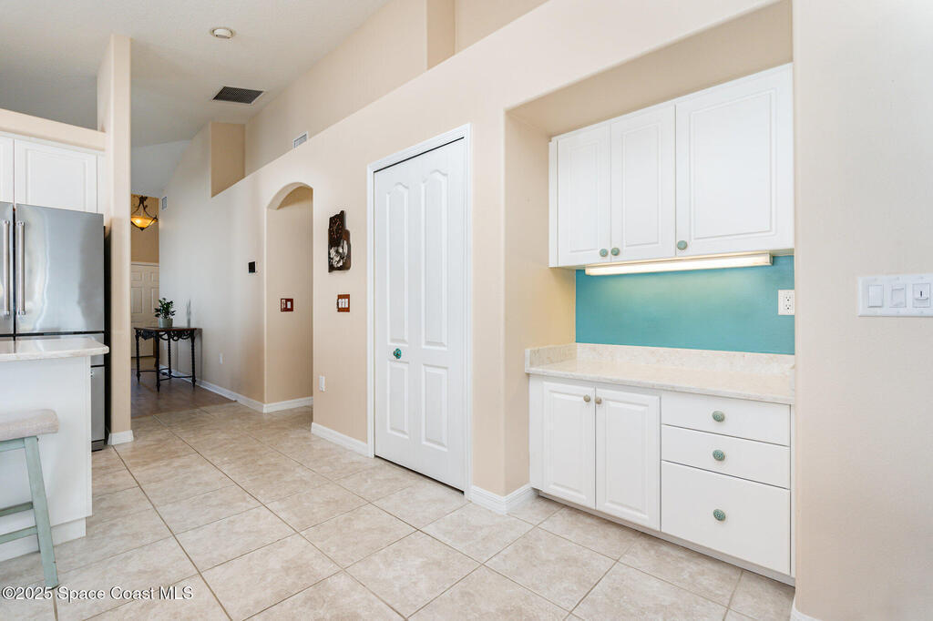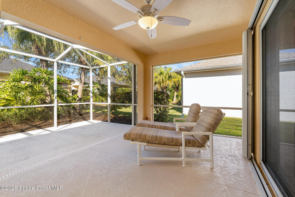Welcome to Heritage Isle, Viera's premier 55+ guard-gated, resort-style community, offering true maintenance-free living and an unmatched lifestyle. This beautifully maintained 3-bedroom, 2-bathroom home is just two short blocks from the luxurious Heritage Isle Clubhouse, where residents enjoy a heated pool & spa, fitness center, bar/cafe, craft room, game room, tennis, pickleball, bocce ball, shuffleboard courts, and scenic jogging/walking trails.The home itself is move-in ready and features solid block construction with elegant stone-accented exterior, tropical landscaping, a screened lanai overlooking lush greenery, and a recently sealed paver driveway. Major updates include a NEW HVAC (2025), Roof (2018), and accordion hurricane shutters throughout (including the front door) for peace of mind.Inside, you'll find an inviting, open layout with tile and laminate flooring throughout - no carpet. The eat-in kitchen is equipped with all NEW stainless steel appliances: