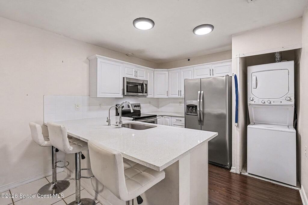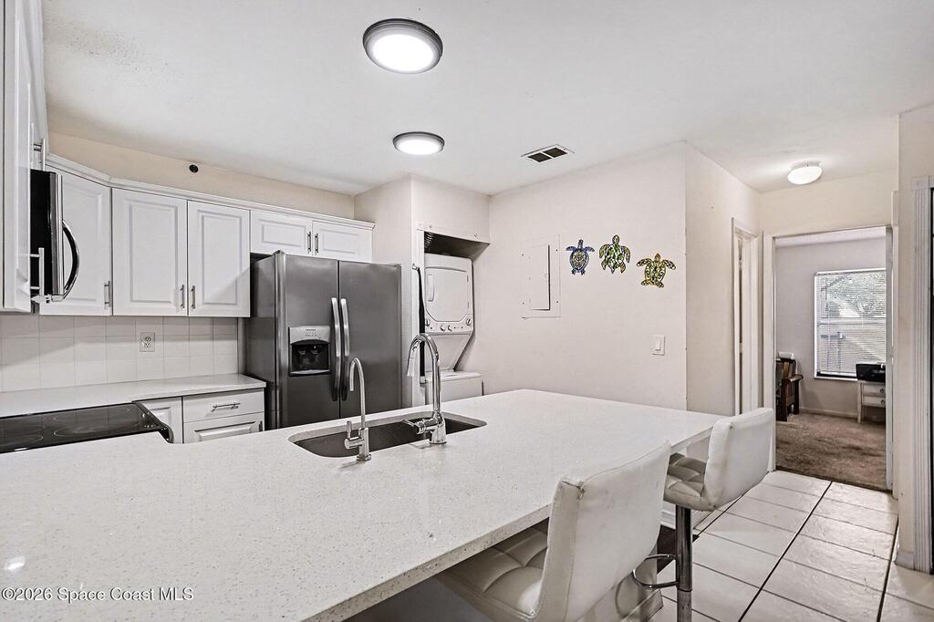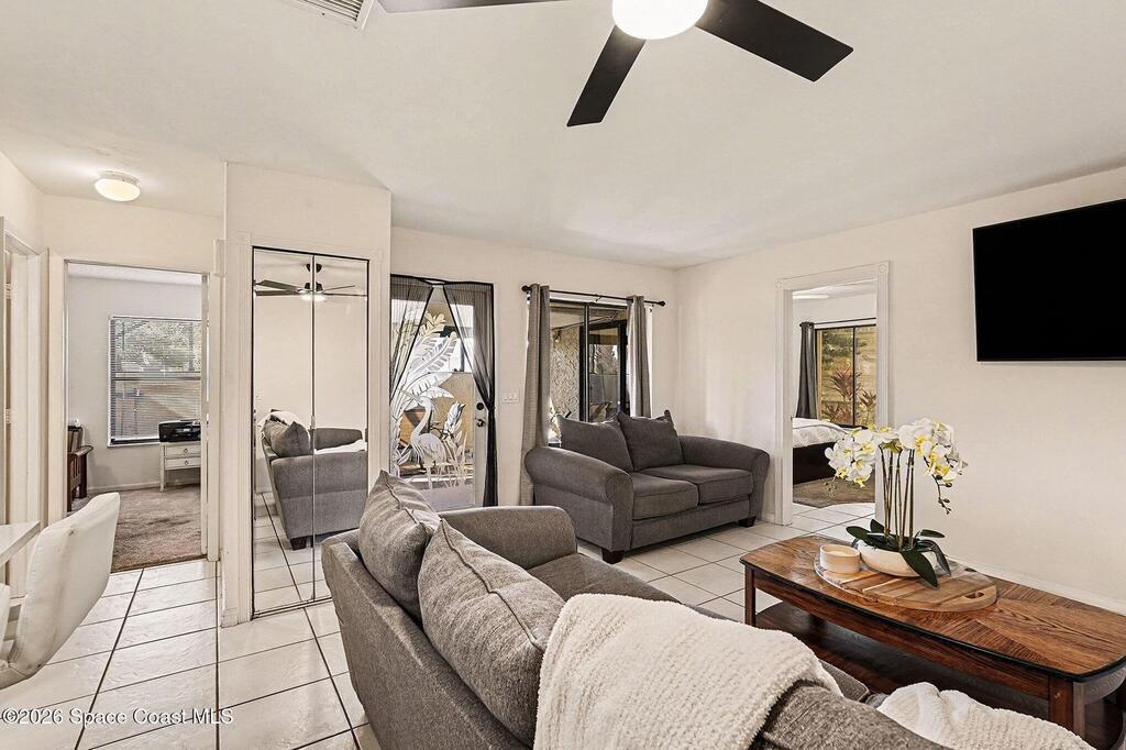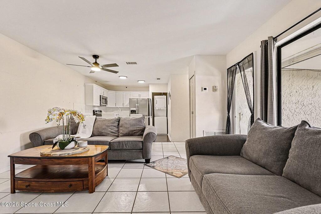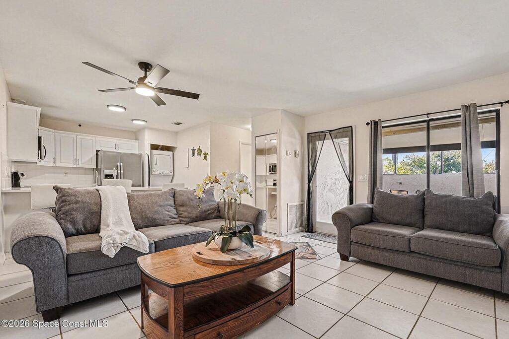Move-in ready 2 bedroom, 2 bath townhome in the desirable Oakwood Villas! This updated home features an open floor plan, a remodeled primary en suite bathroom, an updated kitchen with all appliances included, plus an in-unit washer and dryer. Enjoy the screened front patio and low-maintenance living throughout. The community offers excellent amenities including a pool, tennis courts, park and playground, clubhouse, on-site management, trash service, plenty of guest parking, and maintenance for the structure, common areas, and grounds. Convenient Palm Bay location close to shopping, dining, and major roadways. Don't miss this opportunity!