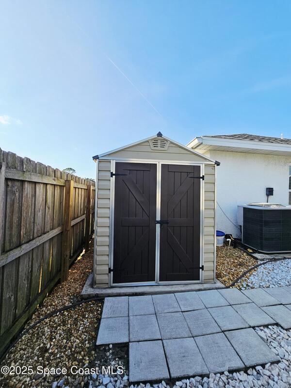 Pool home on corner lot with city water & NO HOA. Beautifully updated kitchen with quartz countertops, new appliances & maple cabinets. 4 bedroom & 3 full bath, split floor plan offers both open family room to kitchen & large dining room off formal sitting room or office space. Other updates include Impact windows, living room slider, primary bedroom door, lead glass entry door, water treatment system. Concrete pad & gate added for R/V or boat parking & shed for extra storage. Pool resurfaced 2019, Roof 2019, hot water heater 2020