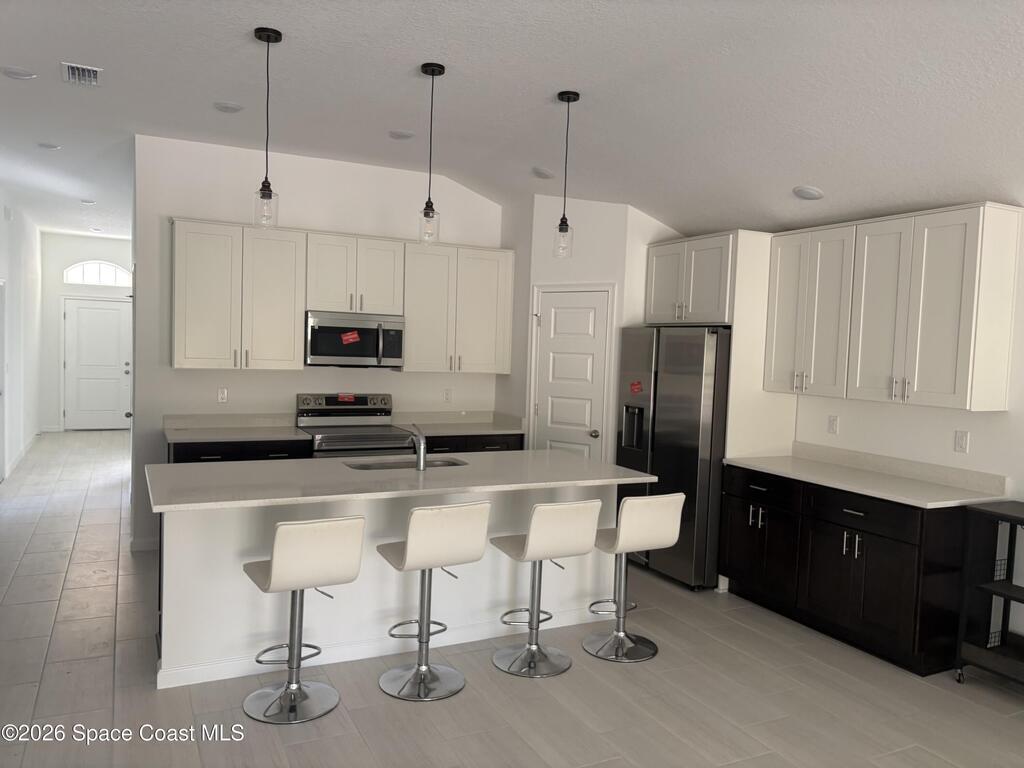 3% SELLER CONCESSIONS! NO HOA! Luxury living at an affordable price! With 1794 SQFT of living space, to include four spacious bedrooms and two elegant bathrooms, this corner lot home offers ample space for both relaxation and entertainment. The open-concept features a modernized kitchen, complete w/ 42'' upper cabinets, Samsung stainless steel appliances, large island, dry bar, & highlighted with quartz countertops. The master suite boasts an upscale bathroom, with Corian solid surface counters, custom fixtures, and standalone shower w/accented tile and flooring. Additional bedrooms are generously sized, ideal for guests or a home office. Other features are custom tile throughout (NO CARPET!), custom efficient fixtures and LED lighting, prewire for fans in all bedrooms, storm shutters, double pane windows, hurricane rated garage door, and covered lanai patio for outdoor gatherings. This home is on city water and septic. 1 yr bumper to bumper/2-10 Builder warranty included.