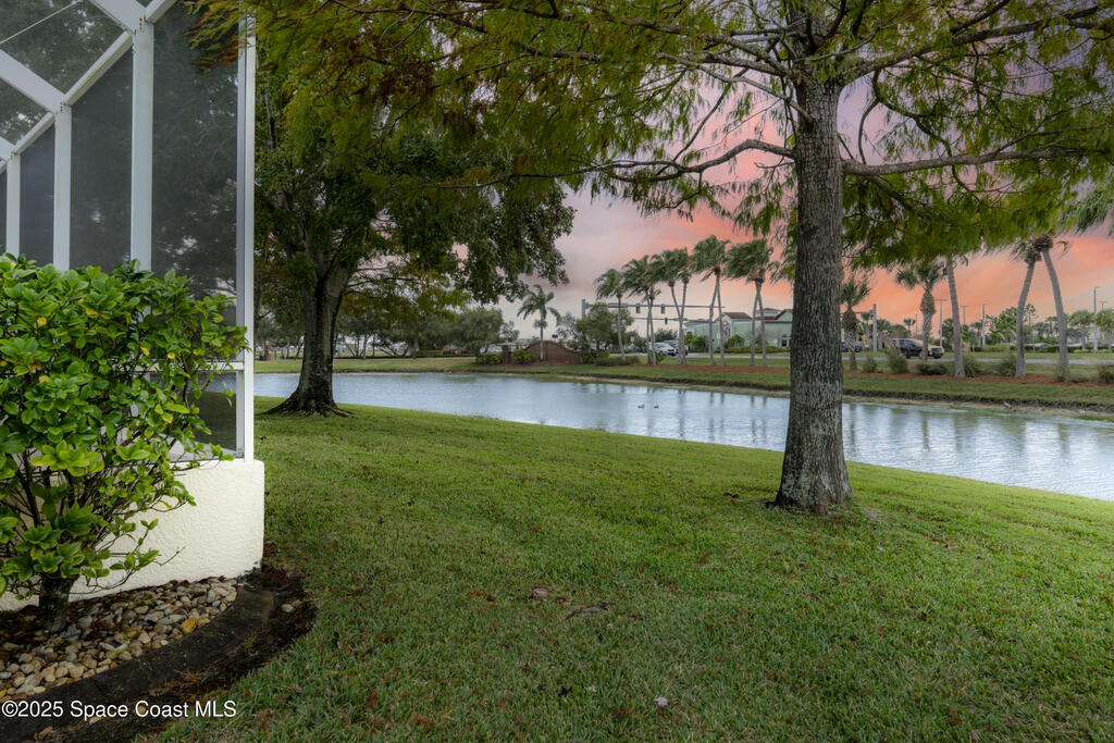 MOTIVATED SELLERS! Nestled in the very desirable gated community of Sonoma in Viera, this meticulously maintained 4-bed/3-bath home offers 2, 554 sq ft of elegant living on one of the largest lots (.26 acre) in the neighborhood. Zoned for top rated schools. High ceilings, crown molding, & plantation shutters enhance the refined interior. The huge open kitchen features granite countertops, an island, bar seating, breakfast nook, pantry, & induction cooktop. Spacious master suite includes his & hers custom closets, dual vanities, tub, & separate shower. Split-bedroom layout for privacy. Enjoy the sunsets on the screened lanai with ceiling fans & accordion storm shutters, overlooking the lake. Additional highlights: 3 car garage, water softener, full irrigation system. Amenities: gated entry, playground, park, tennis & basketball courts. Very close to Publix, dining, golf, Brevard Zoo & more. Disney less than 1 hour away. Easy access to 95.
