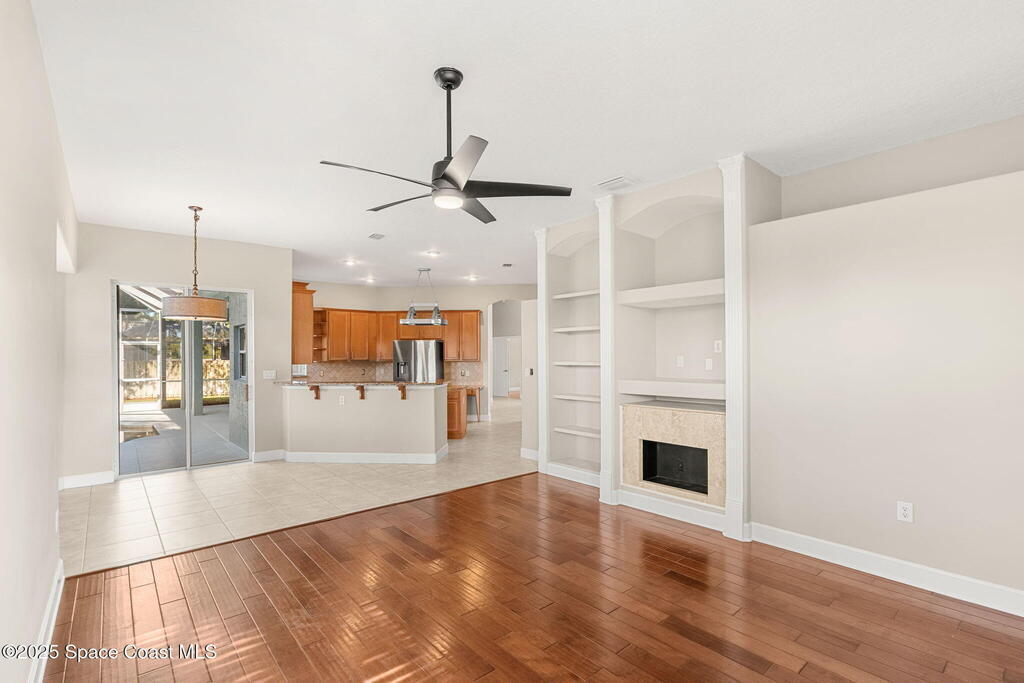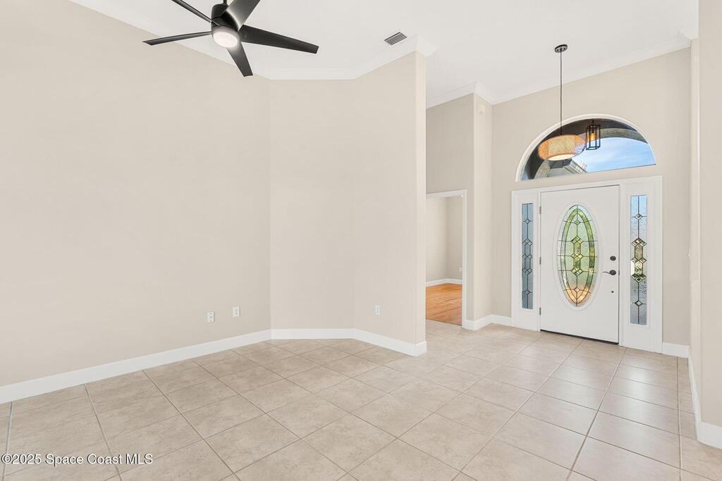 Welcome to River Grove, one of South Merritt Island's premier executive communities with a private community dock for fishing, kayaking, and sunset views on the Indian River. This inviting 4-bedroom, 2-bath home offers high ceilings, abundant natural light, and an open, comfortable layout. Formal living and dining rooms provide flexible space for everyday living or entertaining. The kitchen features an island, built-in desk, and breakfast nook, opening to the family room with wood flooring and pool views. The primary suite is spacious and private with a large custom walk-in closet and well-appointed bath. Enjoy peaceful pool views from the screened porch--perfect for relaxing. Updates include a 2018 roof, new A/C system in 2018 with new ductwork in 2021, fresh interior and exterior paint, and new Kohler toilets throughout. A well-cared-for home in a highly desirable South Merritt Island location.