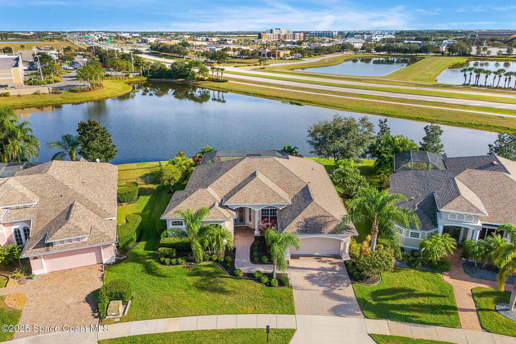 Don't wait! LOCATION! LOCATION! LOCATION! This gated neighborhood in sought after north Viera is home to this beautiful lakefront/saltwater pool gem! This open floorplan is turnkey with upgrades galore. Roof is 2020, HVAC and Water heater 2025, & hurricane panels offer peace of mind and low maintenance. High ceilings offer light and space. Split floorplan with upgraded quartz. Crown molding, LVP and hot tub are just added benefits. With easy access to all things Viera, come live your golf cart lifestyle today! Close to shopping, restaurants and beaches.