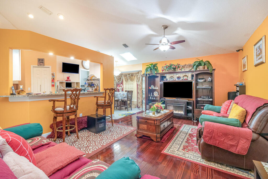 UPGRADES GALORE IN THIS ONE OWNER BEAUTY! THE HOME HAS BEEN WELL CARED FOR AND IT SHOWS WITH MANY TASTEFUL UPDATES TO KEEP IT IN PRISTINE CONDITION. BRIGHT, BEAUTIFUL COLORS ACCENTUATE THE SPACIOUS 3/2/2 WITH DEN FLOOR PLAN . UPGRADES/FEATURES INCLUDE CITY WATER, UPDATED KITCHEN 2021, 6 YR OLD ROOF, BAY WINDOWS, VAULTED CEILINGS, GORGEOUS MAHOGANY FLOORS, TILE IN KITCHEN AND BATHS, LAUNDRY ROOM, 10X10 SHED WITH POWER, ACCORDION STORM SHUTTERS, SEC SYSTEM W/CAMERAS, FENCED YARD, TILED GARAGE, SCREENED GARAGE DOOR OPENING, TILED/SCREENED FRONT PORCH, BACK PORCH ENCLOSED WITH GLASS WINDOWS & TILED AND WELL WITH SPRINKLER SYSTEM! ENJOY A MINIMAL FPL BILL THANKS TO THE $30, 000+ IN SOLAR THAT IS PAID IN FULL! THIS OWNER HAS SPENT THOUSANDS ON HER DREAM HOME BUT IS NOW READY TO DOWNSIZE. FANTASTIC LOCATION ON A QUIET STREET IN THE POPULAR UNIT 50 AREA.