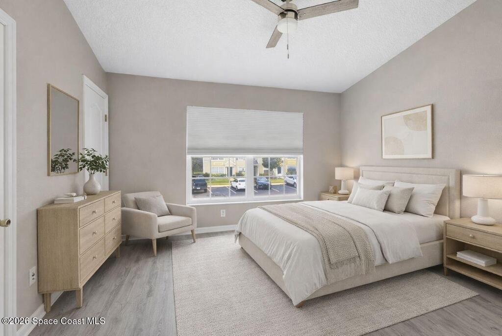 Updated 2-bedroom, 2 1/2-bath townhome with a dual-suite layout. Each upstairs bedroom features vaulted ceilings and their own private full bathroom. Laundry hookup conveniently located on the second floor.The main level offers an open living and dining area, kitchen with built in pantry, a half bath, and access to a screened porch.Recent updates include new flooring, interior paint, upgraded baseboards, modern lighting, ceiling fans, updated window treatments and bathroom vanities.Located in a waterfront community with access to the beautiful community pool and clubhouse. Ideal location with quick access to I-95 (less than 5 minutes) and The Avenues (under 10 minutes).