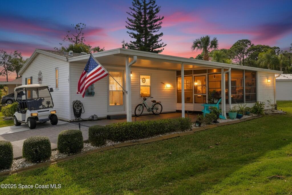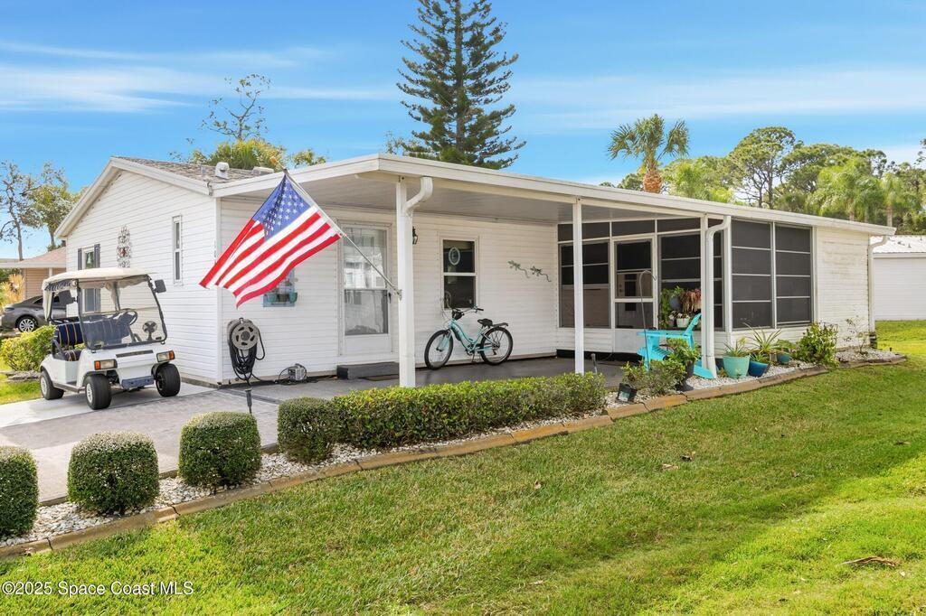 Not Far, close to Nasa, shopping, beaches, major travel arteries, not far from security gate and not far from the clubhouse!This home is perfectly located in the gated community of Lost Lakes!You own your land and your low HOA fee covers cable, internet, lawncare & security.this well maintained home with 2 bedrooms and two baths has waterproof laminate flooring throughout, a light and bright kitchen with island and chairs , new windows and all the charm of Florida living .Your golf-cart is at your front door.This vibrant active community offers so much to enjoy from pickle ball, water arobics, holiday parties, and poker parties too!