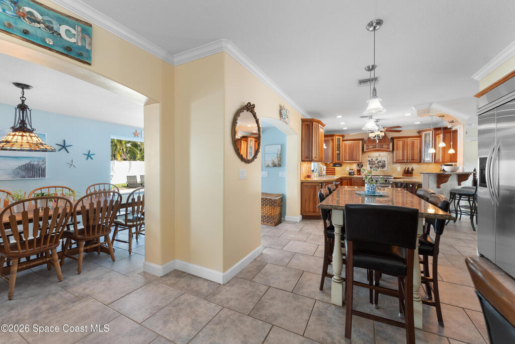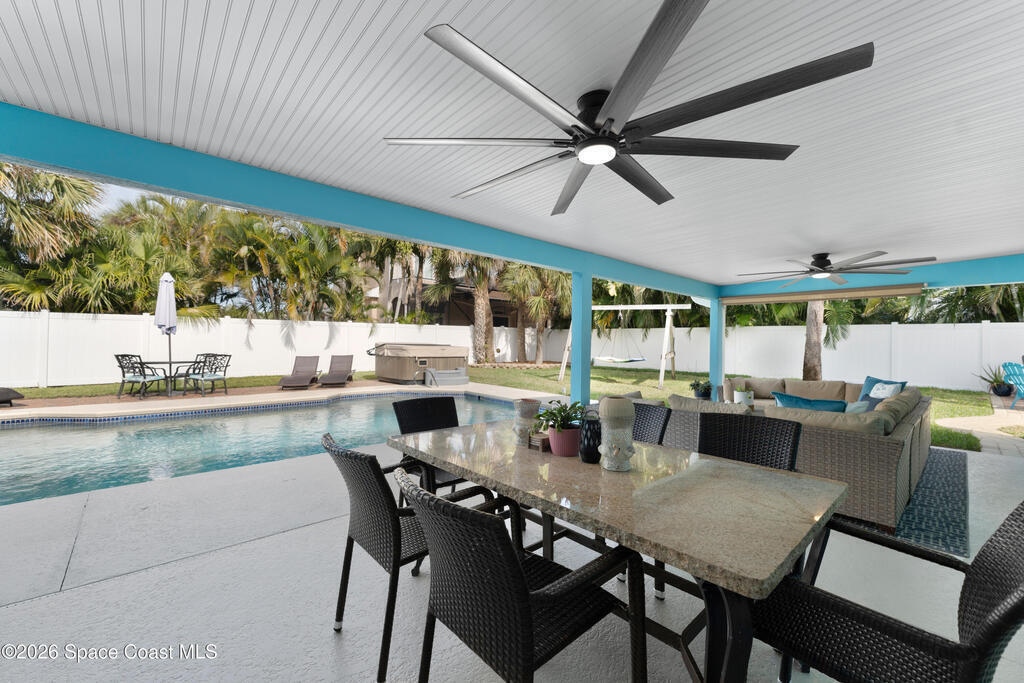 Do not over look the 3 bedroom 2 full bathroom Melbourne Beach gem offering an expansive outdoor living space including a huge 9' deep inground pool, large covered patio, paver fire pit and a outdoor beach shower. There is also a detached car enthusiast's 2 car garage complete with air-conditioning, a commercial electric hydraulic 2 post car lift, oversized commercial roll-up door and a storage loft connected to the house with a breezeway to keep you dry. Membership to the voluntary HOA offers a gated beach access to Melbourne Beach's pristine ocean and the Indian River access for fishing and sunsets. The roof was replaced in 2020 and this home has been re-insulated with spray foam insulation in the attic and most windows are insulated impact glass for a very energy efficient home. A full home water softener and reverse osmosis conveys as well.