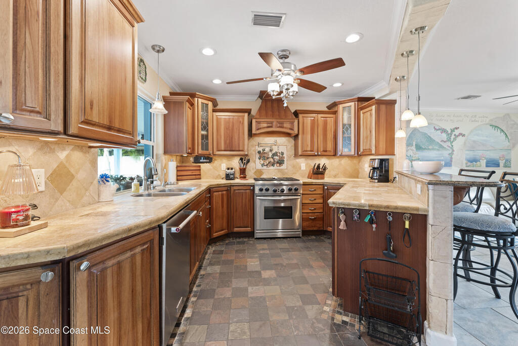 Breakfast Bar, Built-in Features, Ceiling Fan(s), Kitchen Island, Primary Bathroom -Tub with Separate Shower, Primary Downstairs, Split Bedrooms, Walk-In Closet(s)