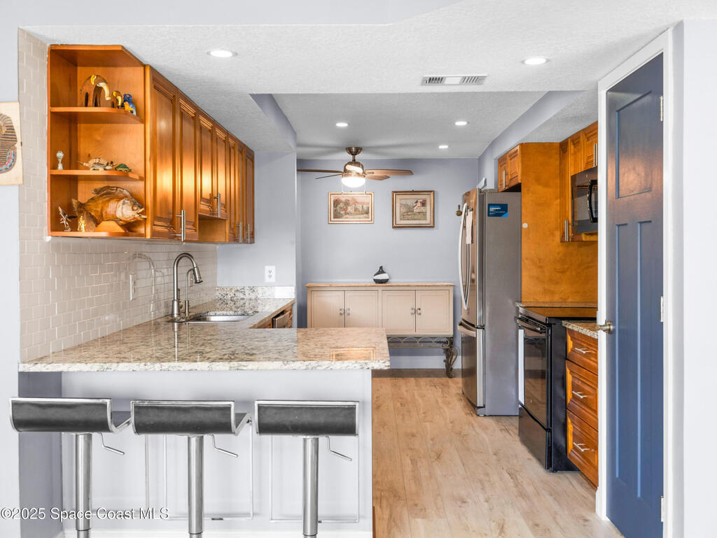 Gorgeous 3-bed, 2-bath condo in Palm Bay with stunning Indian River views from a private balcony. This remodeled 1, 480 square ft home features vinyl plank flooring, granite kitchen countertops, rich cabinetry, and a cool coastal color palette. The spacious owners suite includes an upgraded bath with double sinks. New impact windows and a tankless water heater add comfort and efficiency. Enjoy a DEEDED boat slip with a brand new lift, boater's dream! Also includes 1-car garage and extra parking. Community perks: heated pool, spa, clubhouse, fitness center, tennis court, marina, and fishing pier. Perfect for snowbirds, boat lovers, and retirees looking for relaxed waterfront living near everything Palm Bay has to offer.