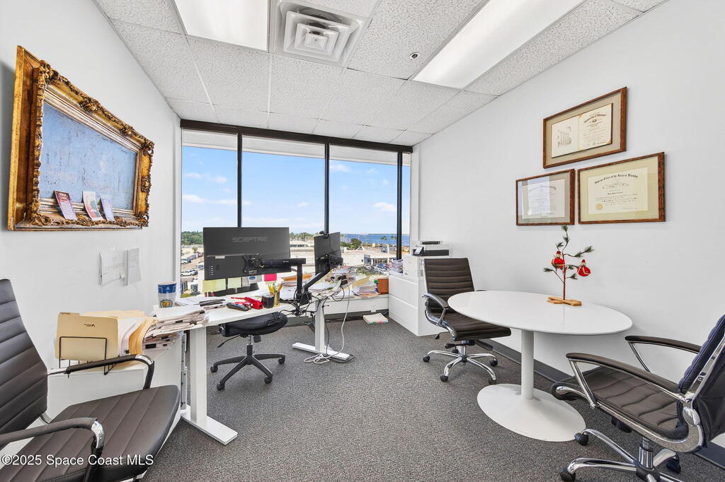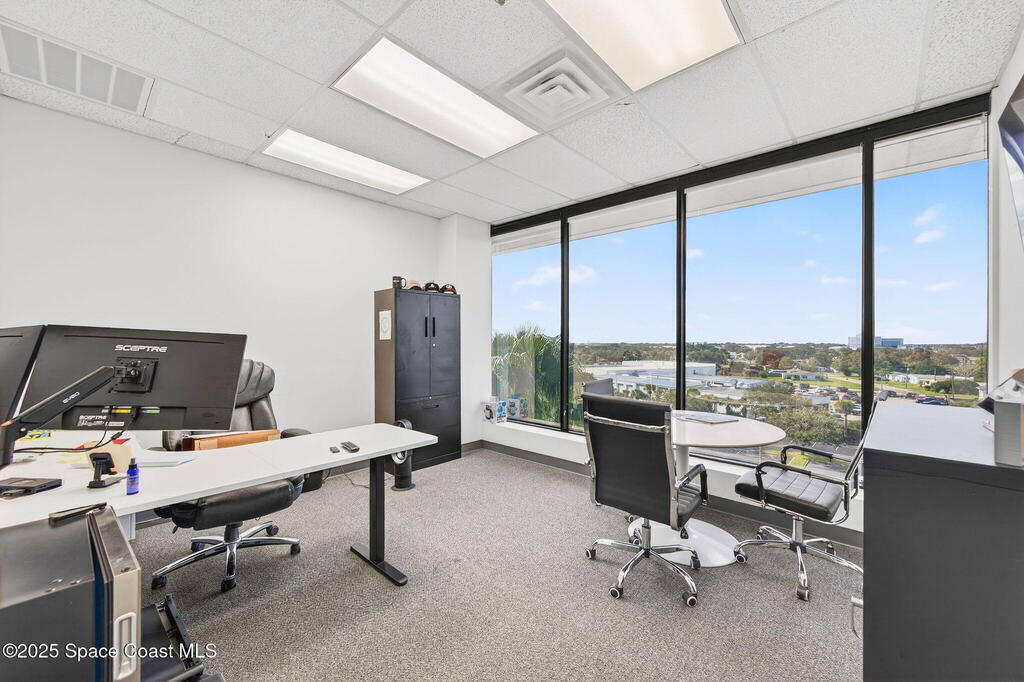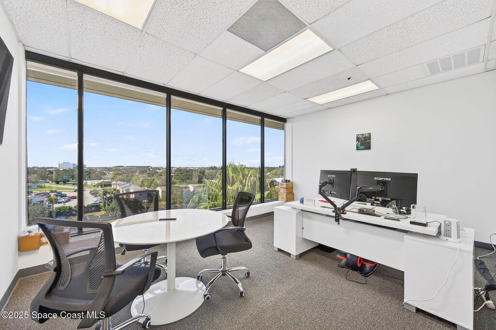 5th-floor, 2, 085 sq ft Class A office suite with three river-view offices, three additional private offices, a large bullpen, and two secure storage rooms. Includes a break room with full refrigerator, two entrances, and access to common-area restrooms. Close to the airport and major employers, with strong visibility on Harbor City Blvd (32, 000 cars/day). All offices include new solar shades, and the property offers ample parking.