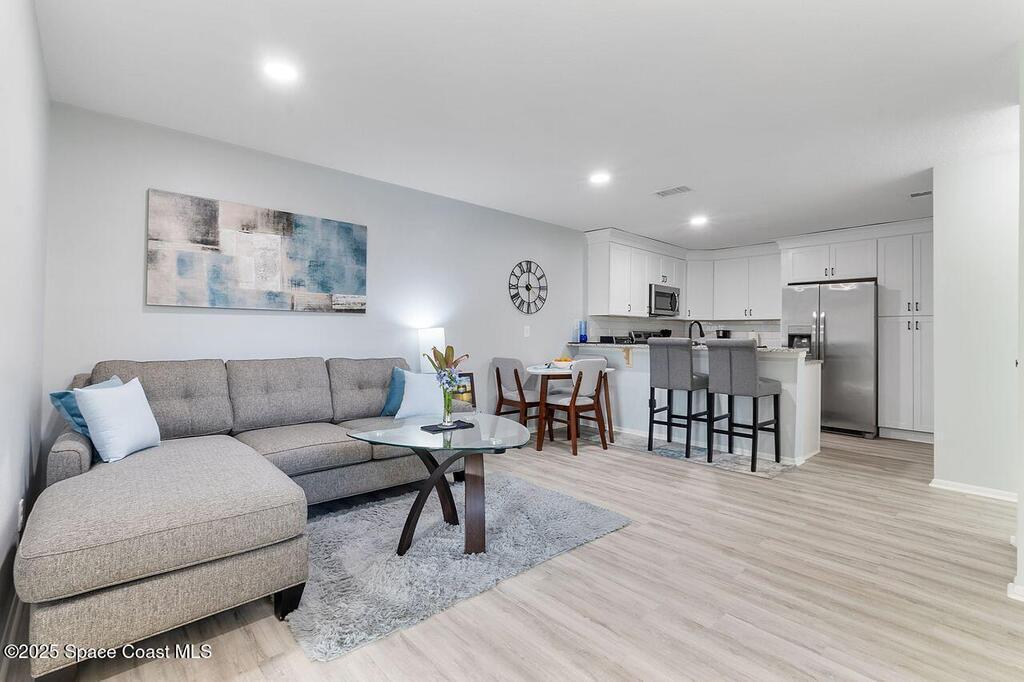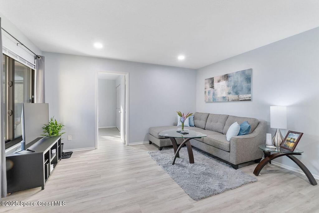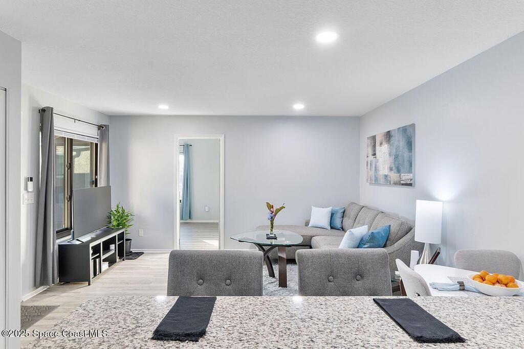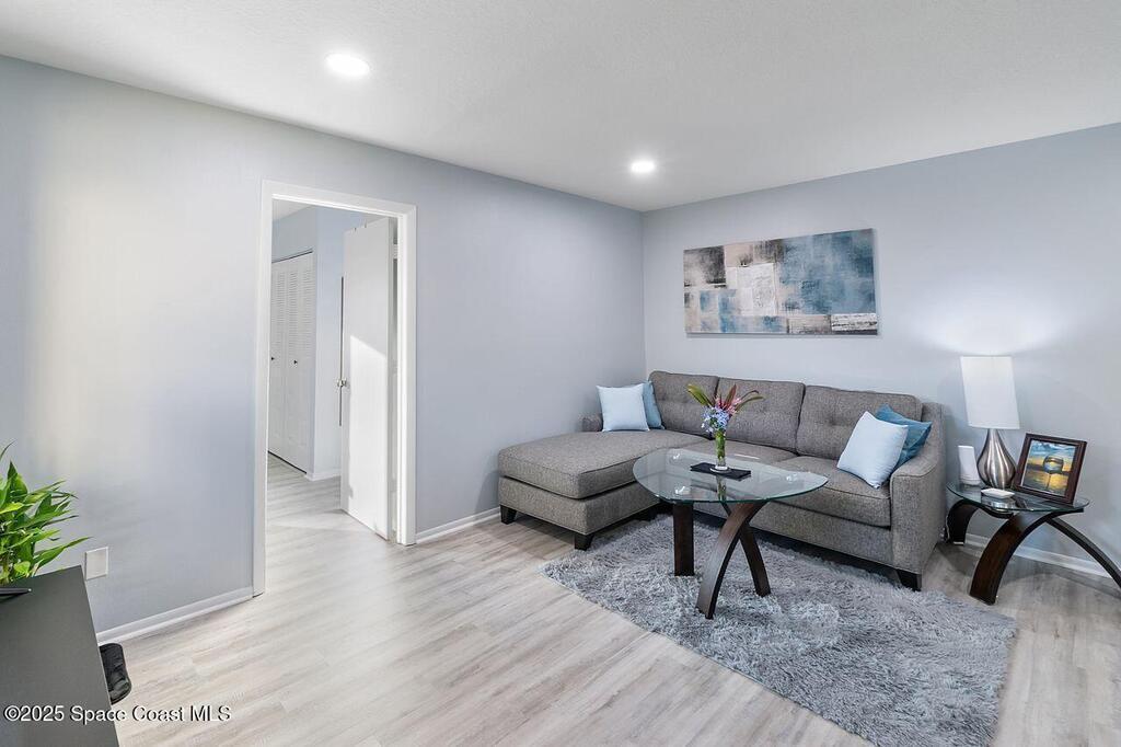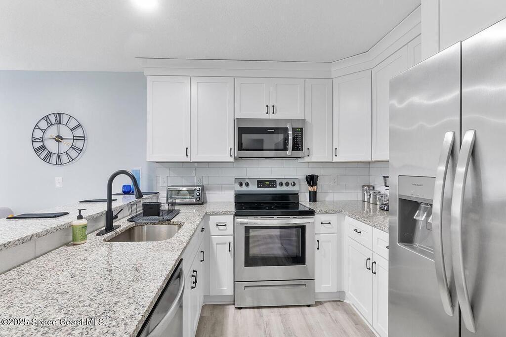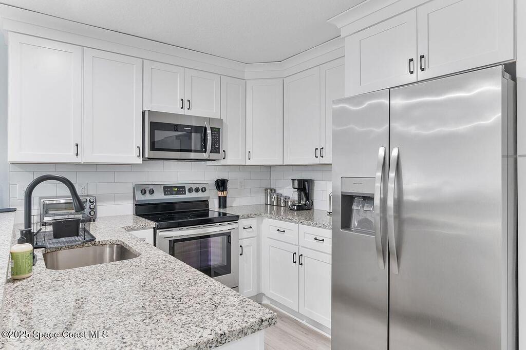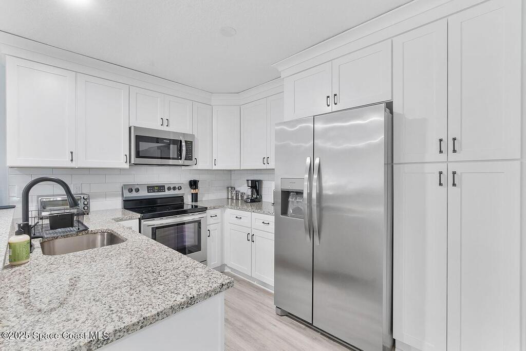 Welcome to an exquisitely remodeled home where no detail was overlooked. Fully renovated and permitted, this property offers exceptional peace of mind with the owner's investment in high quality improvements, no expense was spared. Inside enjoy luxury vinyl plank flooring 2025, impact windows 2023, new appliances and kitchen with subway tile backsplash 2024, granite, custom cabinets, stack-able laundry in the unit, breakfast bar, AC 2019, water heater 2023. The bathrooms have been thoughtfully upgraded with an insert, so no grout and a sleek look with low maintenance. Outside the freshly painted exterior is complemented by a courtyard with custom turf that is pet proof. The roof is 4 years old, leaf gutter guards and underground drainage=no puddles. Safety and comfort are paramount, 24/7 owned system and security lighting. HOA offers pool, tennis courts, pickle ball and clubhouse, resort style living with the confidence of extensive, thoughtful renovations. Cash only please.