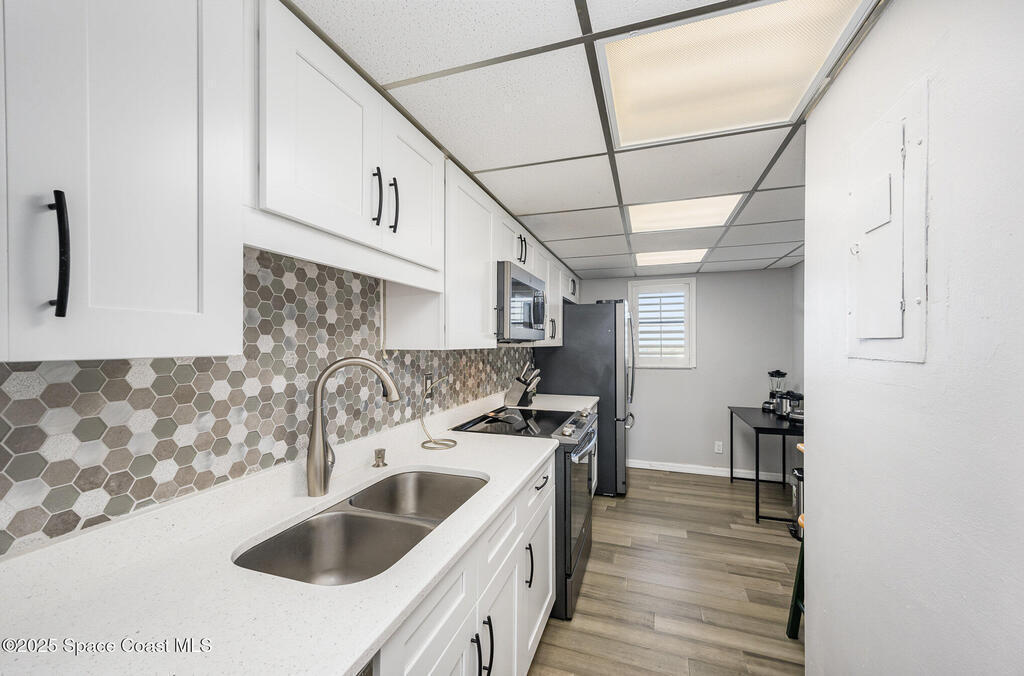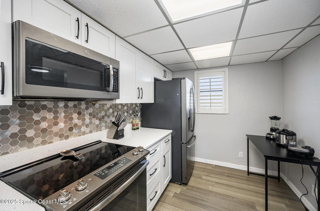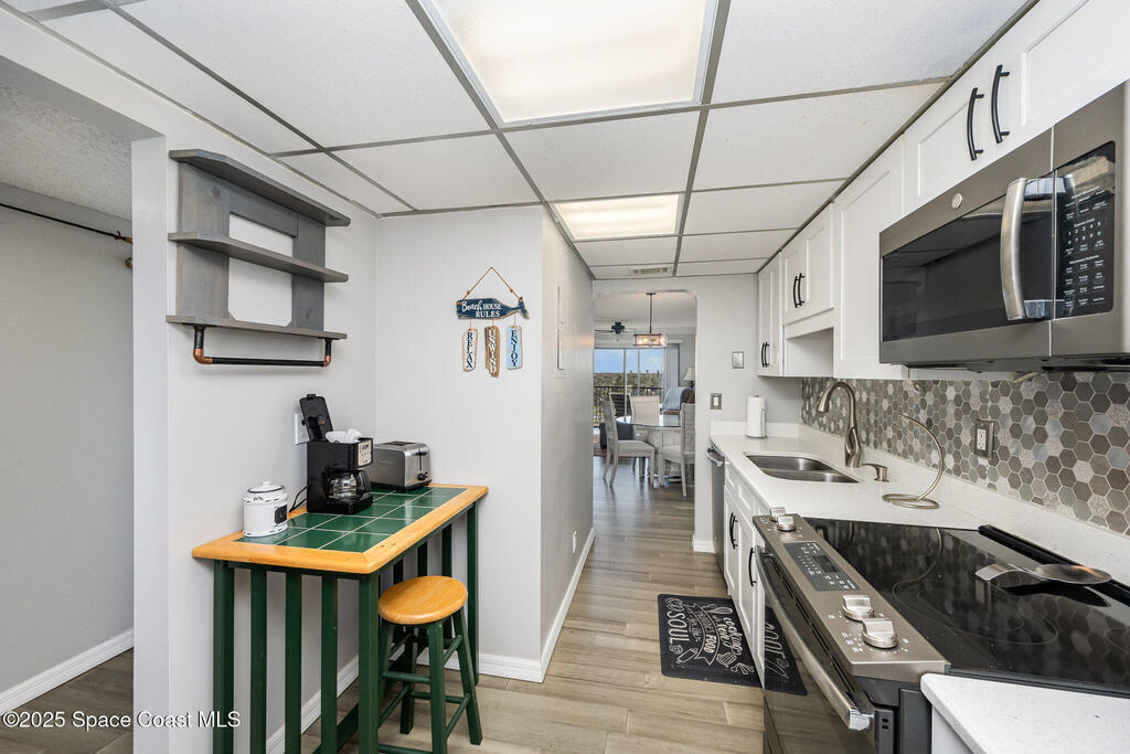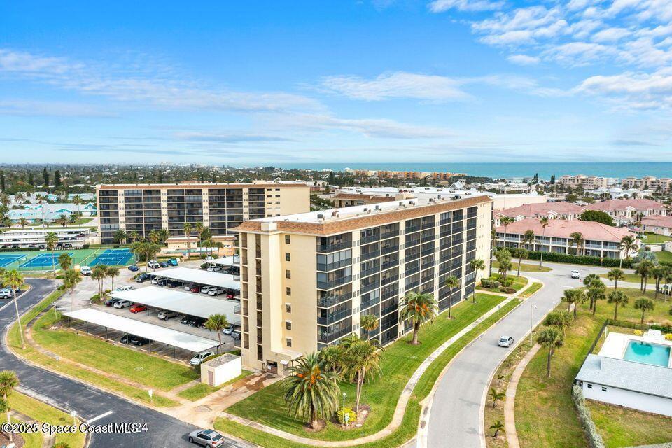 Welcome to this beachside 2 bed, 1.5 bath, 6th floor unit only a block from the ocean! This rare find comes with stunning upgrades with quartz kitchen and beautiful backsplash, laminate flooring throughout, open living area perfect for entertaining, breathtaking views from the balcony, and split bedrooms for privacy! New AC and washer/dryer. Amazing amenities including pool, shuffleboard, tennis, pickle ball, and use of the Clubhouse this home has it all! HOA includes water, sewer, trash, internet, so you can enjoy all that Florida has to offer!