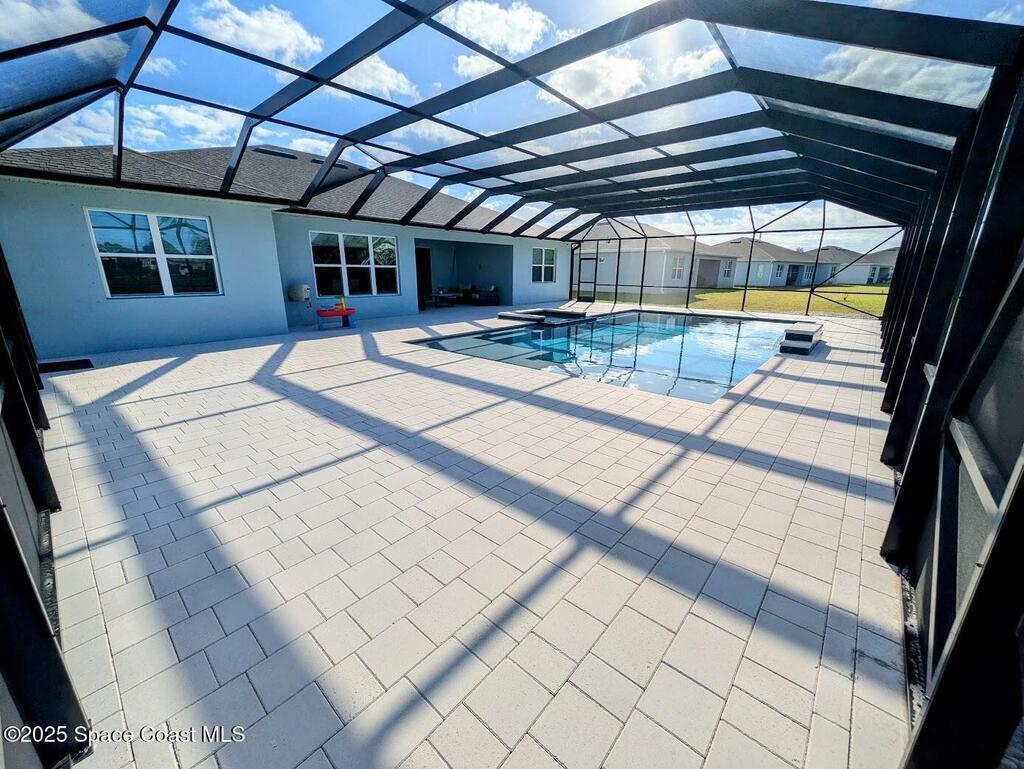 Welcome to your private oasis where modern comfort meets resort-style living. This home features a 20 x 36 custom saltwater pool with a 1, 700 sq ft deck, professionally sealed with a water-based sealant for durability, easy cleaning, and low-maintenance care--ideal for year-round enjoyment and entertaining. The pool includes a beach-style entry, heated pool, and an independently heated spa, all controlled through an automation app. Features include spillover water elements, fountains, bubbling accents, and light shows. A permanent app-controlled exterior lighting system offers customizable colors for daily ambiance, holidays, and special occasions. A poolside walkway enhances indoor-outdoor flow, and a 3- year equipment warranty provides added peace of mind. Inside, enjoy tile flooring throughout, custom-built closets, and custom curtains for style and privacy. The home offers 4 bedrooms and 3 full bathrooms, providing a flexible layout ideal for families, guests, and entertaining.