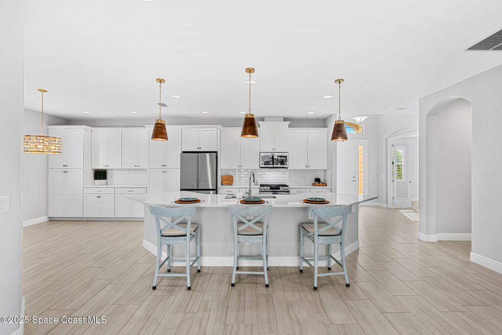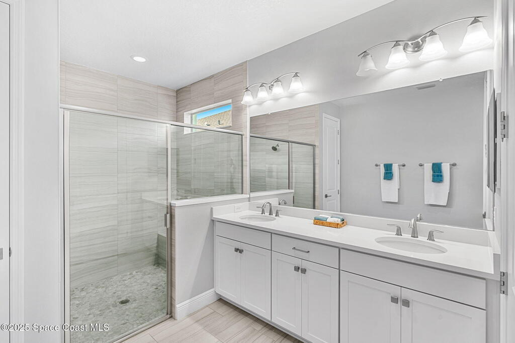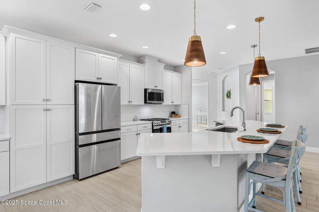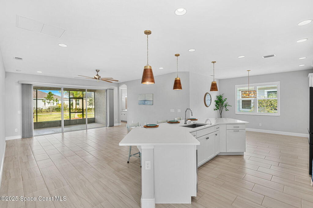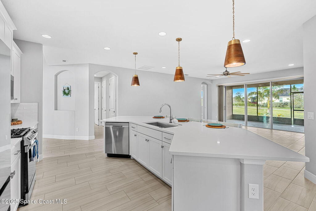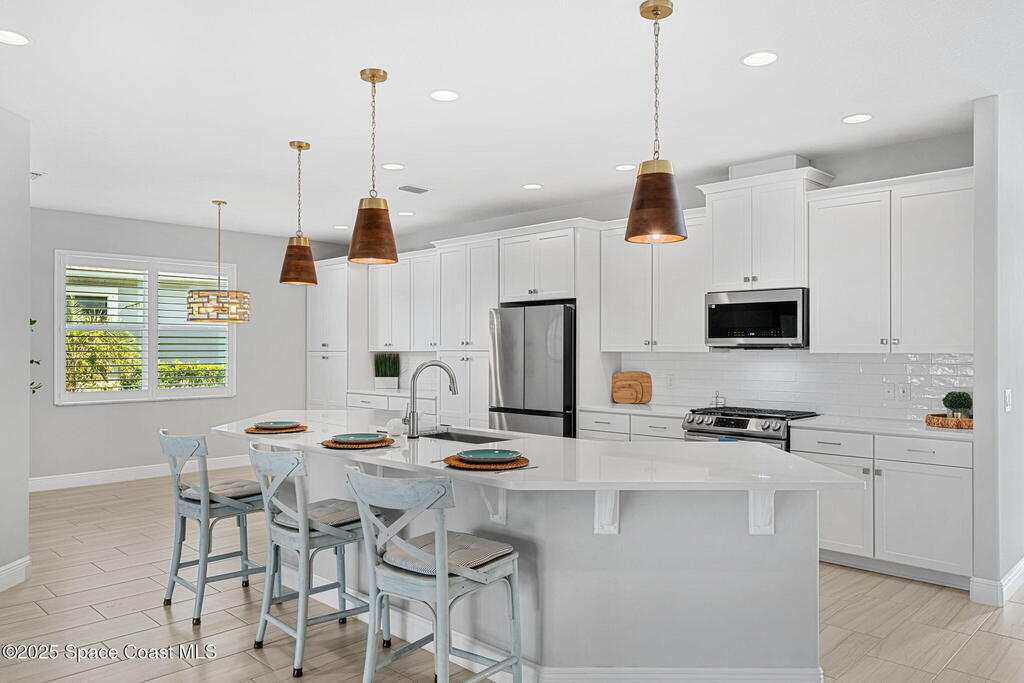 Welcome home to a stunning single-family residence located in the highly desirable community of Sendero Cove in Viera West. Built in 2022 and featuring the Madison floor plan, this modern home offers 2, 283 square feet of thoughtfully designed living space with 4 bedrooms and 2.5 bathrooms.Upon entry, you are welcomed by a bright, open-concept layout that seamlessly connects the living, dining, and kitchen areas. The chef-inspired kitchen serves as the centerpiece of the home, featuring quartz countertops, stainless steel appliances, upgraded cabinetry with pull-out drawers, and a gas stove for precision cooking.Designed with comfort, safety, and efficiency in mind, the home includes impact windows at the front, hurricane shutters throughout, and a tankless gas water heater, providing peace of mind and energy efficiency year-round.Step outside to enjoy Florida living at its finest on the screened-in rear lanai, or take full advantage of