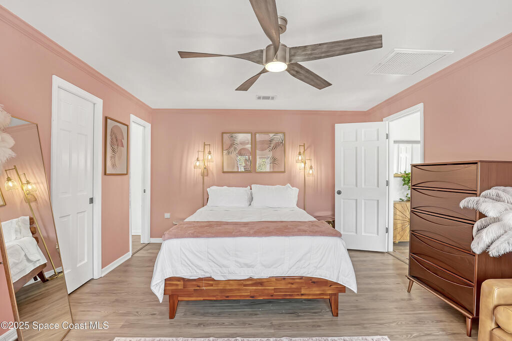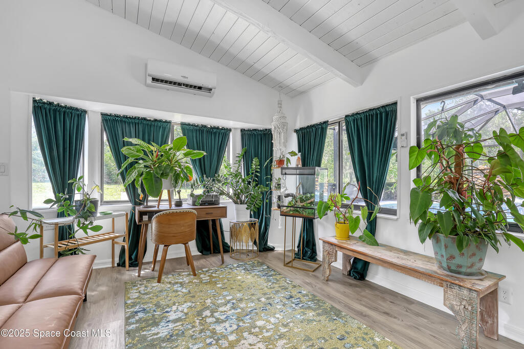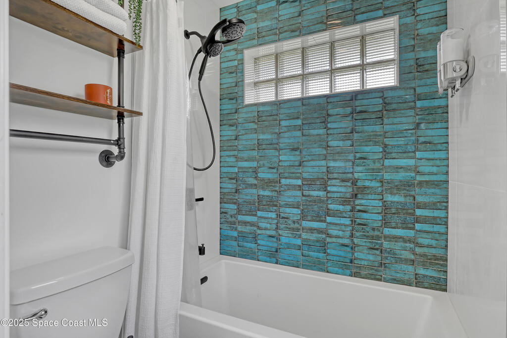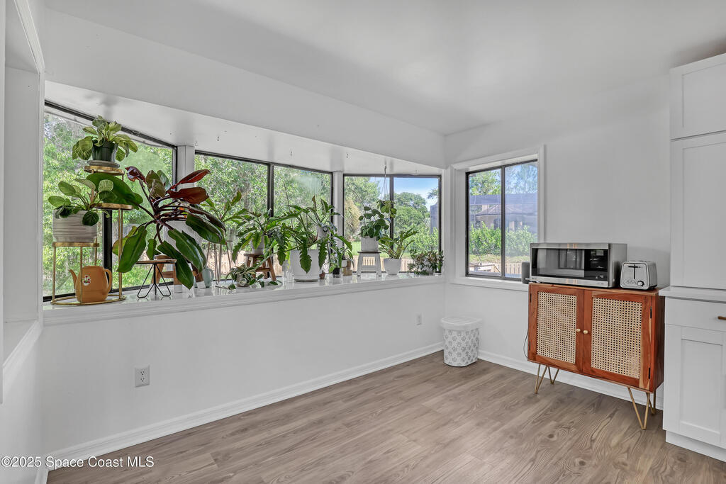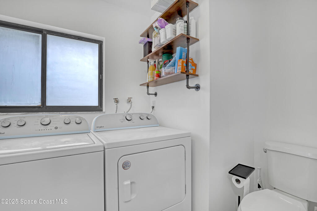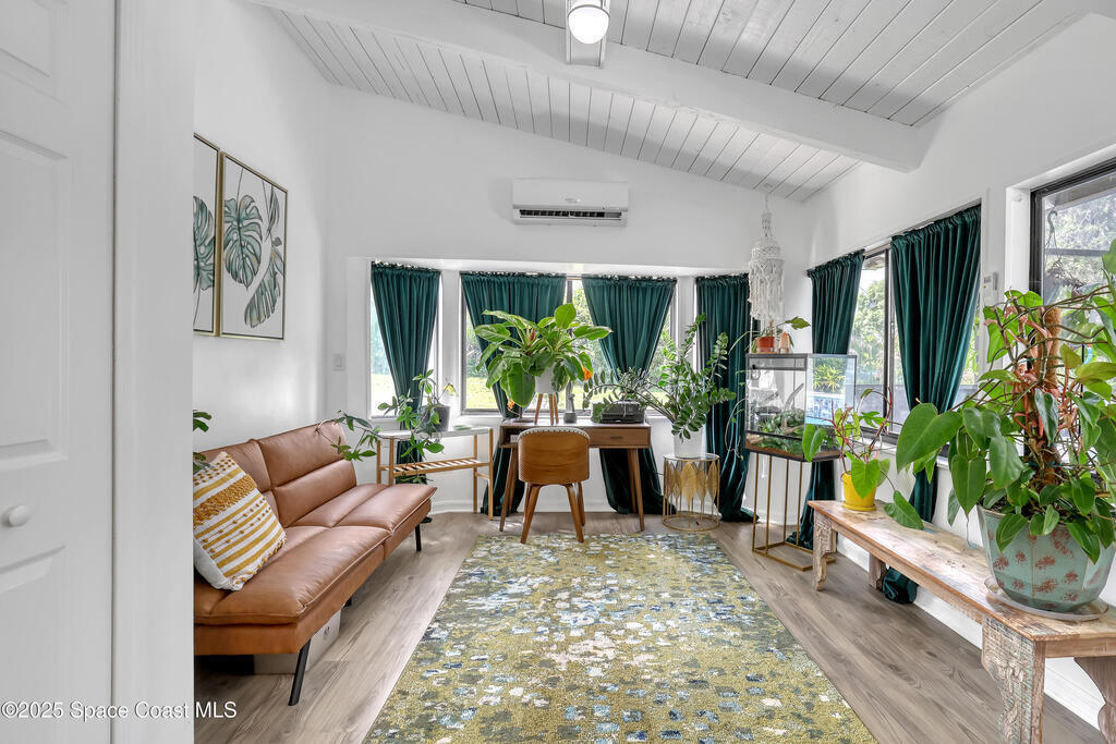 Watch live rocket launches from NASA Kennedy Space Center, relax on the beautiful beaches nearby, and explore historic Titusville! Welcome to this gorgeous, fully renovated Mid-century Modern home featuring a newer roof (2022) and soaring vaulted ceilings, exposed wooden beams, and walls of windows that flood the space with natural light. The open floor plan offers 3 bedrooms, bonus office, two dining areas and a chef's kitchen with a large island, quartz waterfall countertops, modern marble backsplash, and elegant gold accents. Step outside to your private oasis: a completely refinished Saltwater pool with a tranquil waterfall feature, surrounded by a covered sitting area--perfect for entertaining or relaxing. 3-car garage with high ceilings and a spacious concrete patio--ideal for working on vehicles or extra parking 3 driveways for easy access and ample guest parking