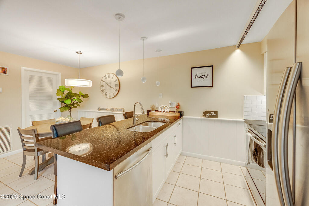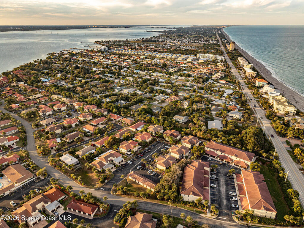 Where else can you live just 412 feet from the Atlantic Ocean at this price? Secure your own slice of coastal living in this updated townhome, perfectly positioned between the Intracoastal Waterway and the ocean. Start your mornings with an easy walk to the shoreline for sunrise and sea-turtle season, and spend evenings enjoying sunsets from your private lanai or with neighbors at the pier.This 2-bedroom, 1.5-bath townhome has been thoughtfully updated, offering abundant natural light and sleek new fixtures that enhance the clean, modern feel. The lanai features an outdoor shower, accent lighting, and Christmas Palms, creating a tranquil retreat after beach time. The upstairs balcony also features lighting, ideal for unwinding and taking in coastal breezes.Residents enjoy low HOA fees and a well-maintained, activity-rich community offering two pools, a fitness center, tennis, pickle-ball, shuffleboard, a clubhouse, and more--all within a short walk of beach access