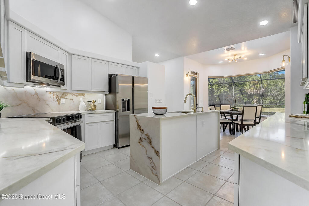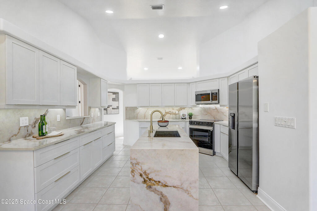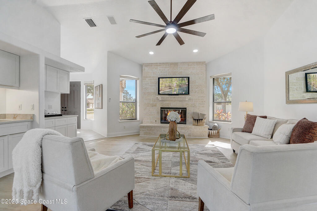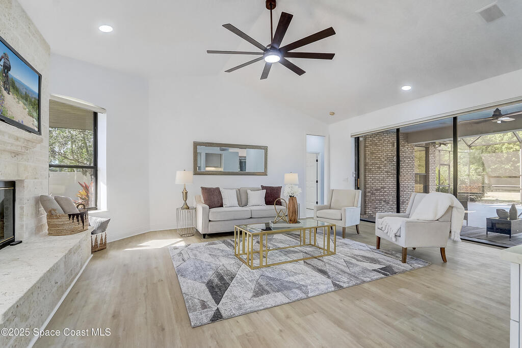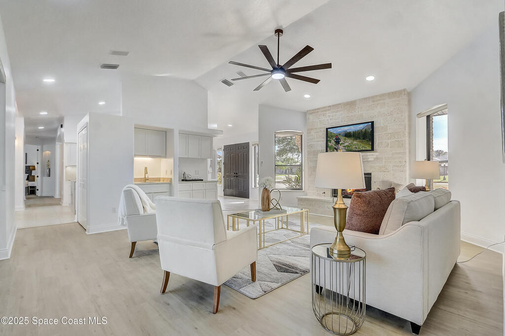 This exceptional single-story coastal residence presents a rare combination of architectural integrity, refined design, and uncompromising privacy. No HOA restrictions, and a full one-acre homesite create a level of freedom and permanence that is increasingly difficult to find. Professionally remodeled in Novemver 2025 and maintained in excellent condition, the home offers a turnkey luxury experience defined by thoughtful upgrades and enduring quality. The interior unfolds with light-filled living spaces and a seamless, open flow ideal for both elevated entertaining and everyday living. The kitchen and bathrooms are finished with elegant quartz countertops, complemented by new white shaker cabinetry and stainless steel appliances, delivering a clean, timeless aesthetic with modern sophistication. Designed for effortless indoor-outdoor living, the home opens to a screened, heated pool, creating a private resort-style setting perfect for year-round enjoyment.