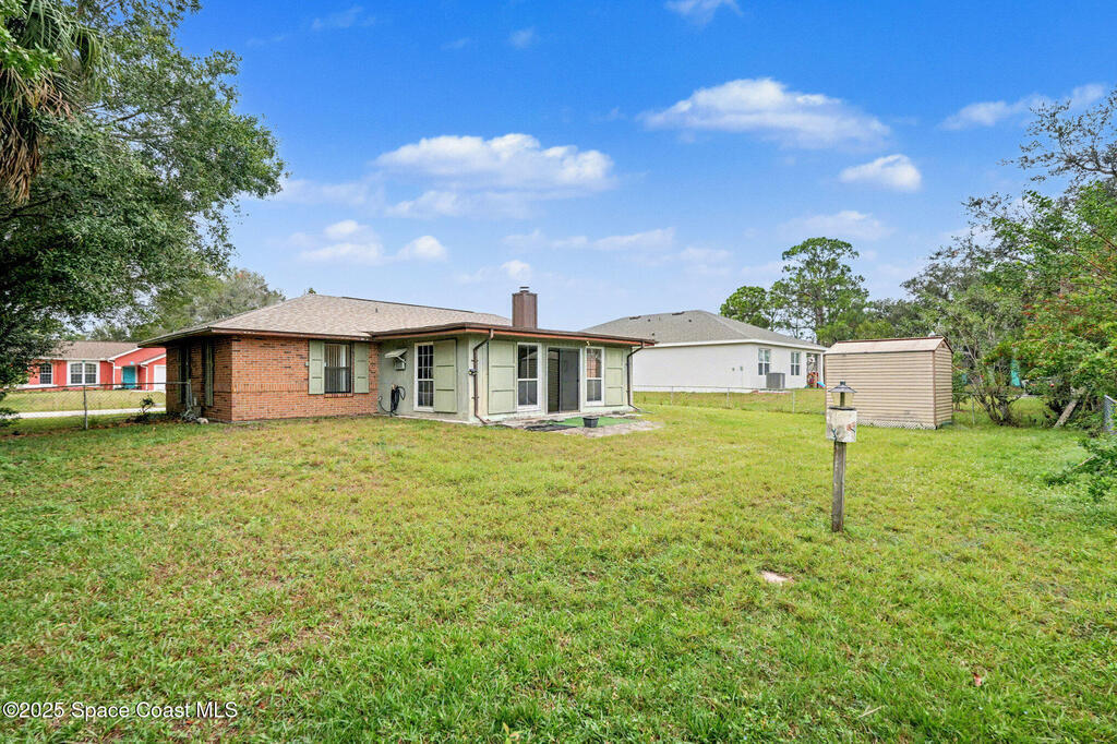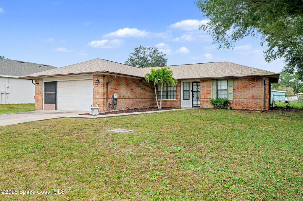 Welcome home to this charming 3-bedroom, 2-bathroom residence in Palm Bay, Florida! Thoughtfully designed for both comfort and functionality, this home offers a bright and open living space ideal for everyday living and entertaining with a beautiful fireplace. The well-appointed kitchen provides ample cabinetry and counter space, seamlessly flowing into the dining and living areas. The primary suite features a private bath and generous closet space, while two additional bedrooms offer flexibility for family, guests, or a home office. Enjoy Florida living with a spacious backyard perfect for outdoor gatherings, gardening, or relaxing evenings. Conveniently located near shopping, dining, schools, and major roadways, this home is a wonderful opportunity to enjoy the best of Palm Bay living. Schedule your private showing today!
