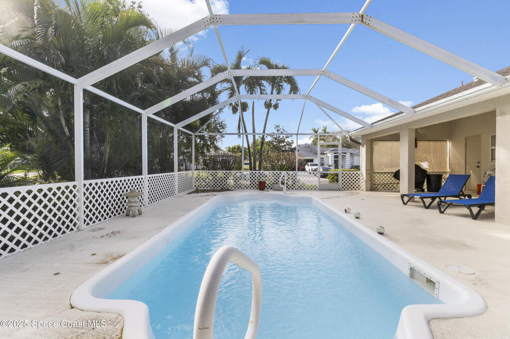This beautiful pool home is situated on a corner lot and features three bedrooms and two bathrooms. Nicely sized rooms and high ceilings create a spacious and inviting atmosphere enhanced by abundant natural light that permeates the windows. An open floor plan seamlessly connects the various living spaces throughout the home. The large covered lanai provides an ideal setting for a relaxing day by the pool shaded from the sun or an ideal setting for evening entertaining. ADA accessible for easy access by wheelchair. Fully re-plumbed and a new roof and skylight installed in March of 2019.
