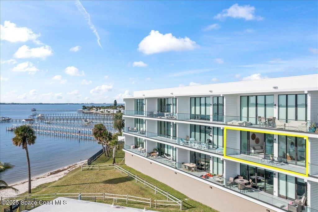 Immerse yourself in Melbourne Beach's premier private resort-style community, spanning from the Indian River Lagoon to the Atlantic Ocean. This meticulously crafted riverfront residence is built with a concrete superstructure, offering exceptional durability paired with tasteful coastal design. The third floor unit features elevated ceiling heights and a seamless open floor plan with three bedrooms, including a riverfront primary suite highlighted by floor-to-ceiling glass. Two luxurious en suites enhance the home's warm, welcoming, and expansive feel. Relax by the riverside pool cabanas or take a short stroll to the beach, where seasonal sea turtle hatchlings make their journey to the ocean. Residents enjoy an impressive array of amenities, including a marina, water sports rentals, and a beachside comfort station. Flexible rental options provide added versatility when not in residence. Experience refined coastal living at Harbor Island Beach Club.