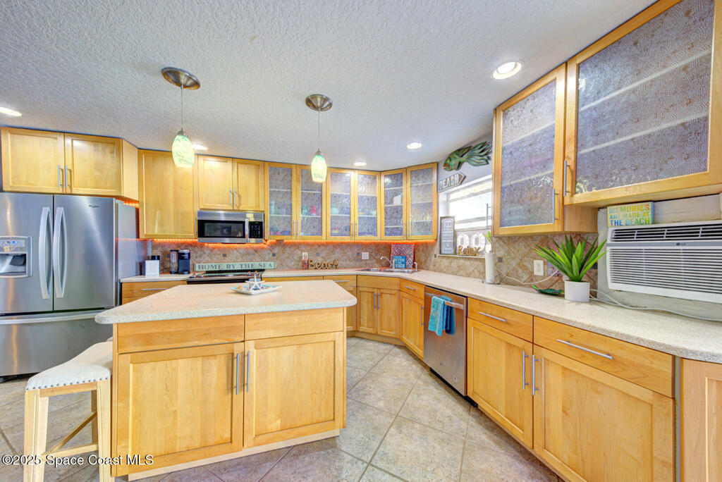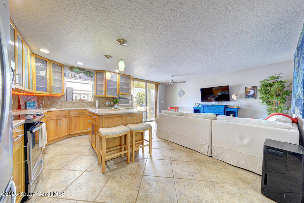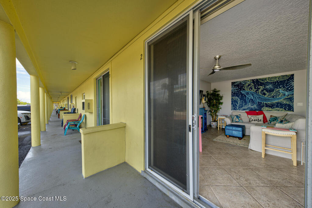 Enjoy the beach lifestyle in this beautifully renovated first-floor condo featuring 1 bedroom and 2 full baths, including a jetted tub. Updates include travertine tile throughout and a standout kitchen with stainless steel appliances, ceiling-height cabinetry, and a movable island. Perfect for everyday living and entertaining.The spacious bedroom includes a new A/C unit, and on-site laundry is conveniently located just steps from the unit.Ideally situated near Ron Jon Surf Shop in the highly desirable Ocean Beach Blvd area, you're within walking distance to shops, dining, and everyday conveniences. Just a short drive to the port or downtown Cocoa Beach, where year-round events and activities await. Enjoy rocket launch views right outside your door, beachside festivals, and local favorites like Surfing Santa on Christmas Eve. Sunrise walks along the shore are truly unforgettable.Also available for rent: 3-month minimum, $2, 100/month.