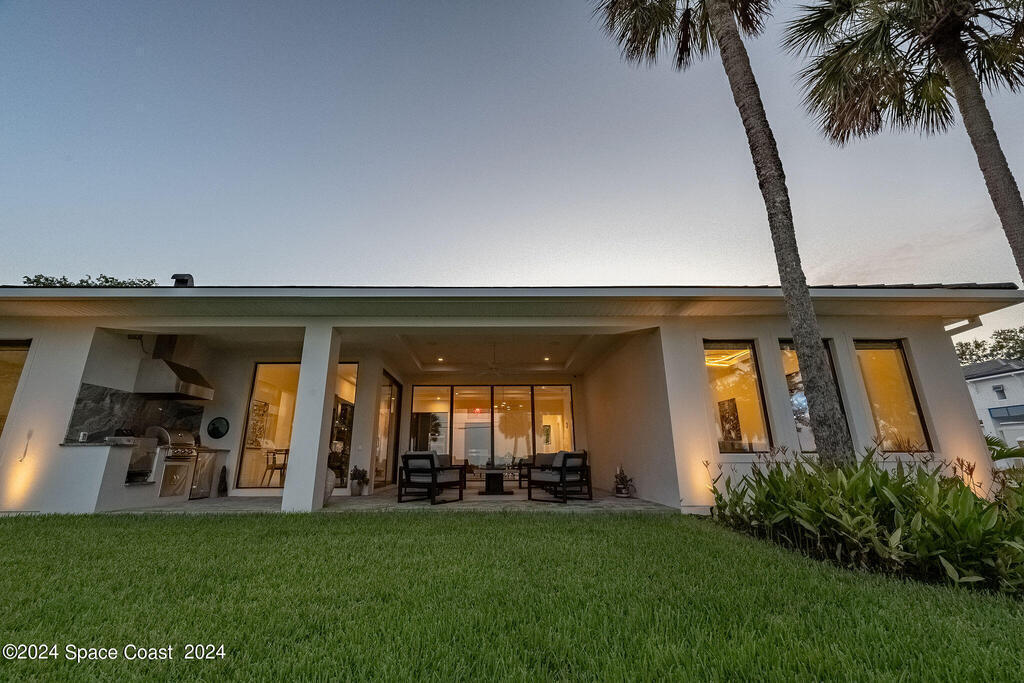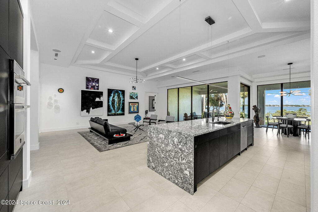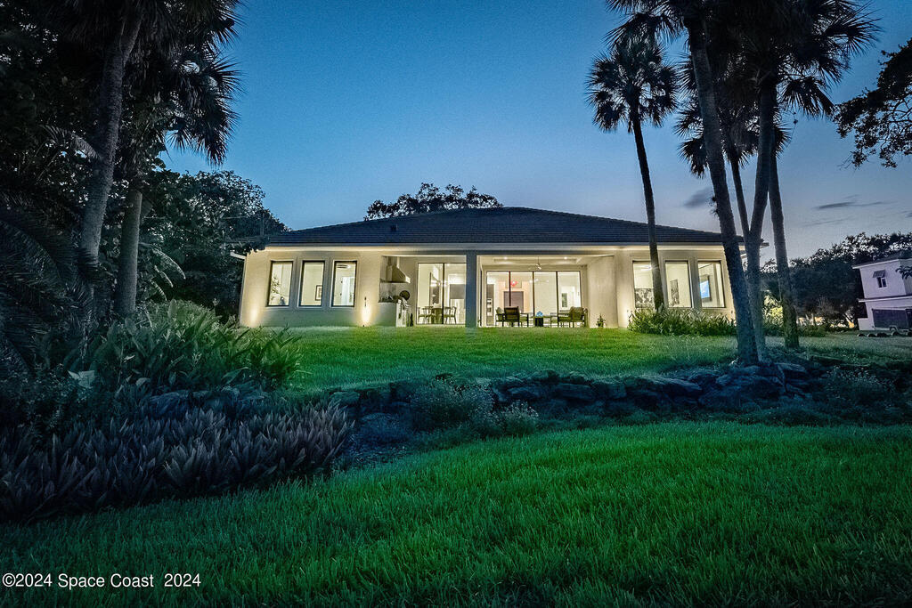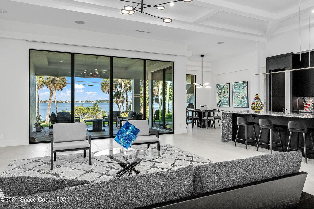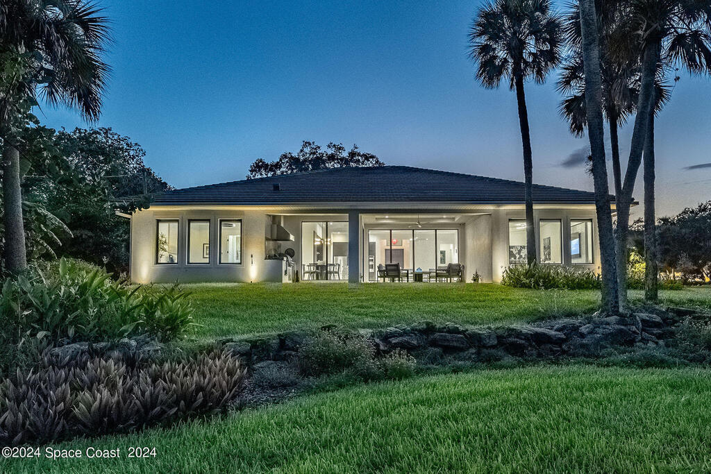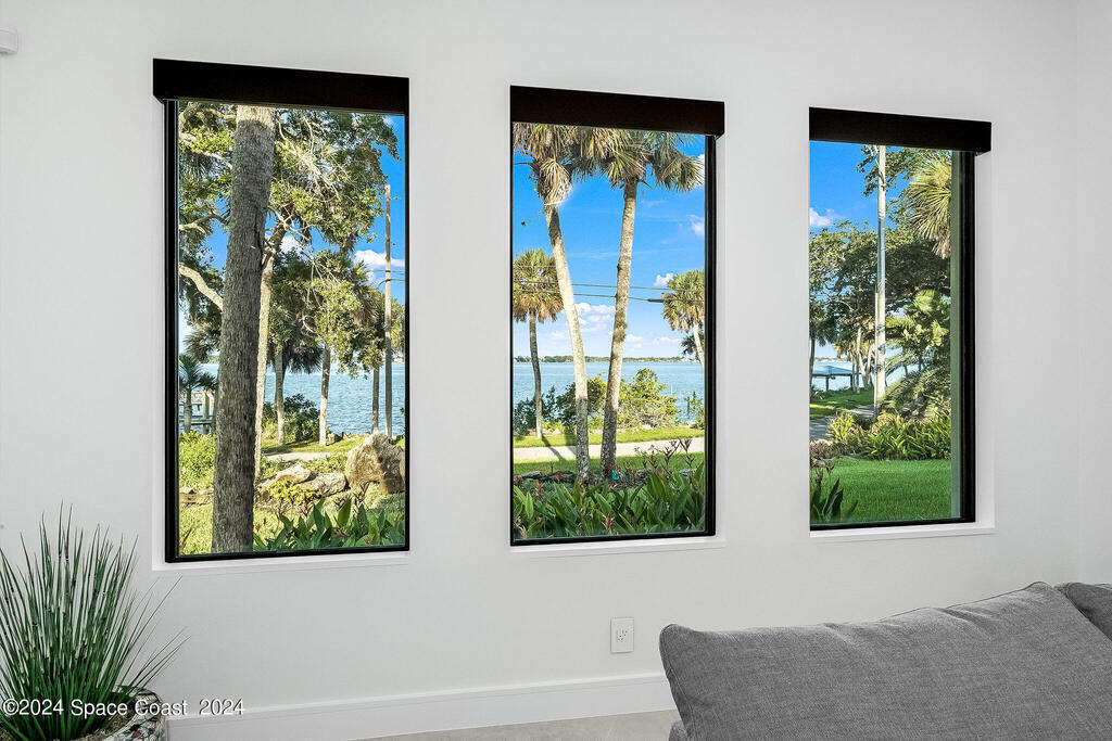Christopher Burton Custom Riverfront home off Historic Rockledge Drive. Just a golf cart ride to Historic Cocoa Village for dining, art festivals, & concerts; minutes from 1-95 to Orlando & the Theme parks, Viera Avenue shopping, and beaches. Watch rocket launches from the covered patio or the HOA dock. Plenty of room to build your own private dock on the Intracoastal Waterway. Positioned outside of any designated flood risk area, this exquisite property offers both beauty & security. Enjoy direct river views, outdoor kitchen, and an oversized 3-car garage. Features include a whole-house generator, poured concrete block every third row, motorized shades, Wi-Fi throughout, security system, and built-in speakers. Homeowners insurance under 4K/year. Exceptional value, luxury, and location all in one! No detail was overlooked in the construction of this exquisite home.