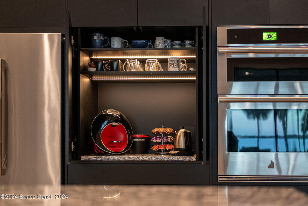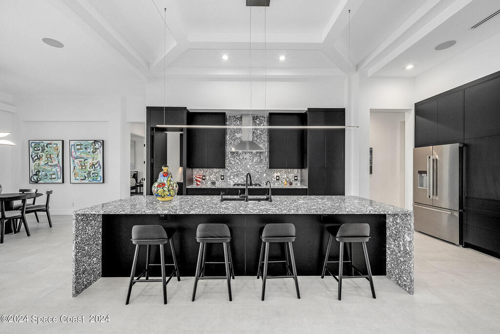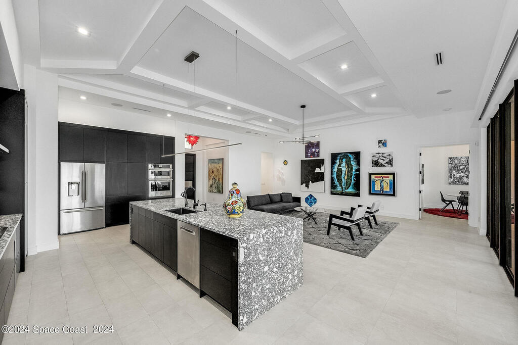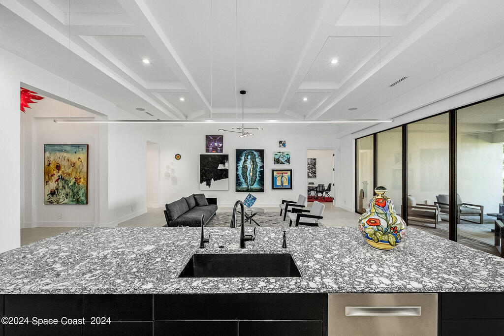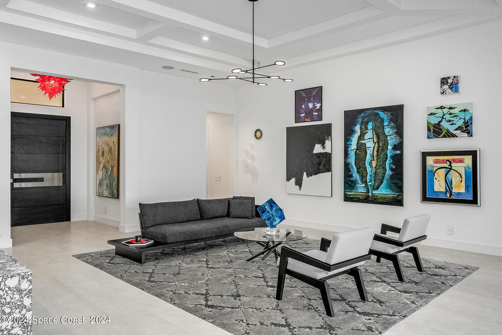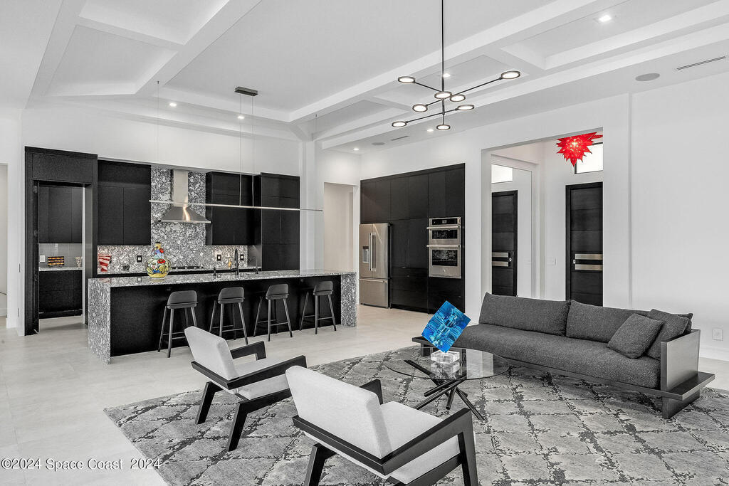 Christopher Burton Custom Riverfront home off Historic Rockledge Drive. Just a golf cart ride to Historic Cocoa Village for dining, art festivals, & concerts; minutes from 1-95 to Orlando & the Theme parks, Viera Avenue shopping, and beaches. Watch rocket launches from the covered patio or the HOA dock. Plenty of room to build your own private dock on the Intracoastal Waterway. Positioned outside of any designated flood risk area, this exquisite property offers both beauty & security. Enjoy direct river views, outdoor kitchen, and an oversized 3-car garage. Features include a whole-house generator, poured concrete block every third row, motorized shades, Wi-Fi throughout, security system, and built-in speakers. Homeowners insurance under 4K/year. Exceptional value, luxury, and location all in one! No detail was overlooked in the construction of this exquisite home.