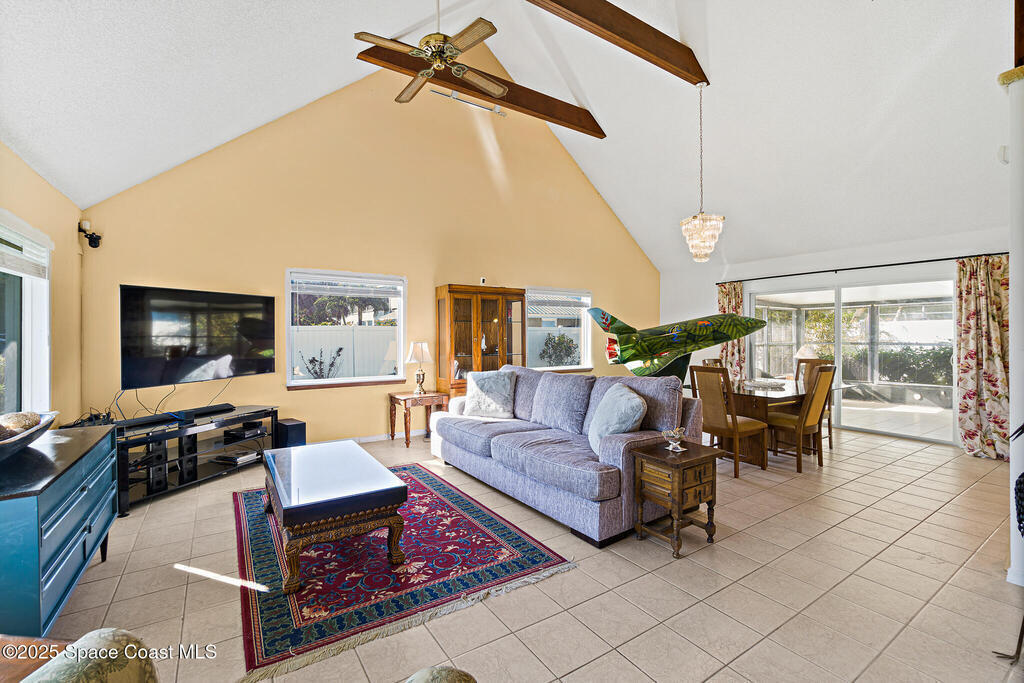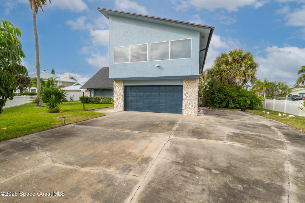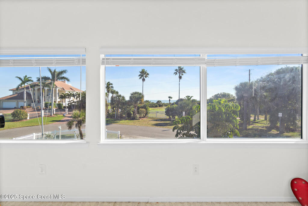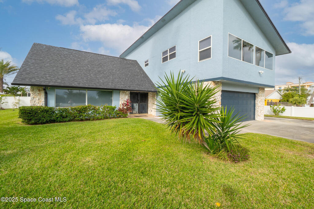 BEACH ACCESS! Nestled on the corner lot of a quiet cul-de-sac, this 3-bed, 2-bath, 2-story home offers direct beach access! OCEAN VIEWS from both floors, and a lush outdoor oasis with mango, lemon, and banana trees. The interior boasts an open floor plan, with tile floors throughout the living areas, carpeted bedrooms, a spacious kitchen and large upstairs room offering ocean views. With RV parking, a 2-car garage IMPACT DOORS & WINDOWS, sprinkler and security systems, new AC and water heater (2 years), and roof (3 years), this freshly painted HOME is built for comfort and peace of mind. Allowing short-term rental potential, with NO HOA. Minutes from Ron Jon Surf Shop, Cocoa Beach Pier, and 1 mile to Port Canaveral's dining, entertainment and cruise terminal. It's ideal for permanent living, vacation getaways, or an income property. This home offers coastal charm and a front-row seat to the beach, amazing rocket launches, and STUNNING SUNRISES! Your coastal paradise awaits.