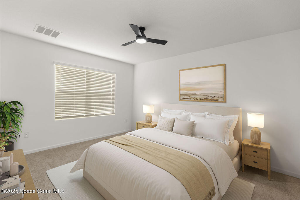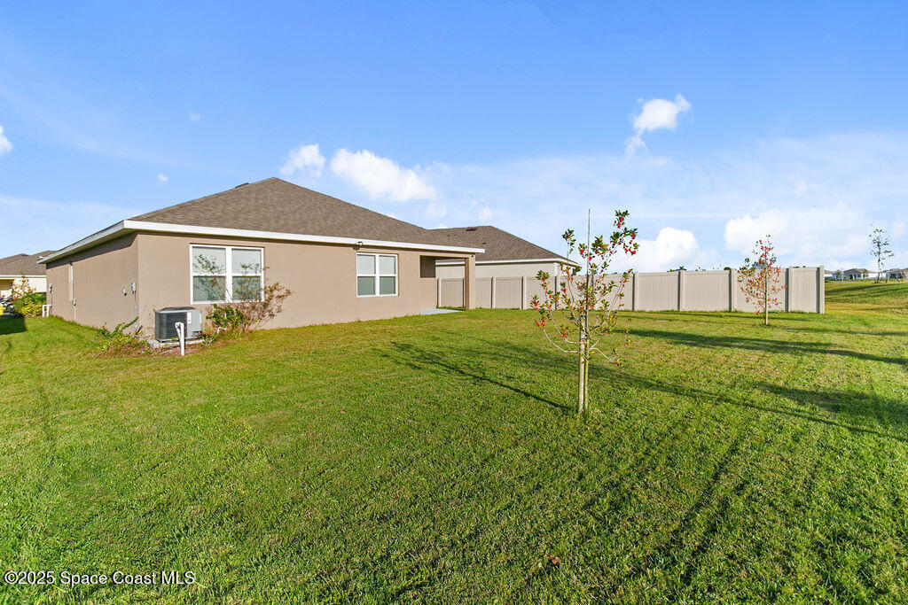 Florida living is encapsulated in this 4 bed, 2 bath single story home that boasts an open concept floor plan, convenience in location, & community. Upon entering the home off of the primary hallway you'll find two sizable bedrooms w/ample storage sharing the use of a full bath. An additional bedroom and laundry room can be found before entering the heart of the home which is a sprawling space that contains the kitchen, complete w/ white shaker style cabinetry, granite countertops, stainless steel appliances, anchored by a large center island. The prep space blends w/ ease into the dining room & off onto the living room making this grand area ideal for entertaining & gathering. The owner's suite is located off the living area w/split floor plan & privacy from the remainder of the home. A walk-in closet, dual sink vanity, & a spacious shower make this a perfect retreat. The home is situated on a level lot w/a charming covered patio overlooking the yard. Close to major routes & beaches