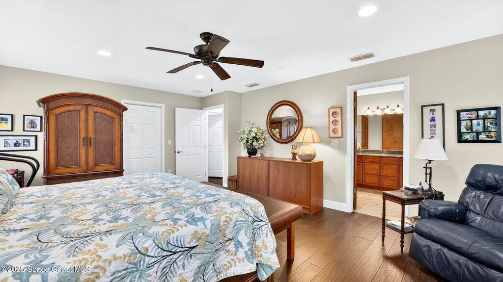 Beautifully remodeled four-bedroom, three-bath home situated on a desirable corner lot with stunning river views and gorgeous landscaping. This thoughtfully designed home features two primary suites, each with its own full bath--perfect for guests or multigenerational living. The great room boasts vaulted ceilings, recessed lighting, and a striking electric fireplace with shiplap detail and custom shelving. The updated kitchen offers an island, breakfast nook, pendant lighting, and upgraded cabinetry with pull-out shelving for added convenience. Plantation shutters throughout enhance both style and privacy. The main primary bath features a walk-in shower, while the guest bath includes a walk-in bathtub. Enjoy peaceful mornings on the front porch overlooking the river or relax in the beautifully landscaped yard with a paver patio and fire pit. Additional features include an inside utility room with sink and a whole-house generator. 72 hr kick out.