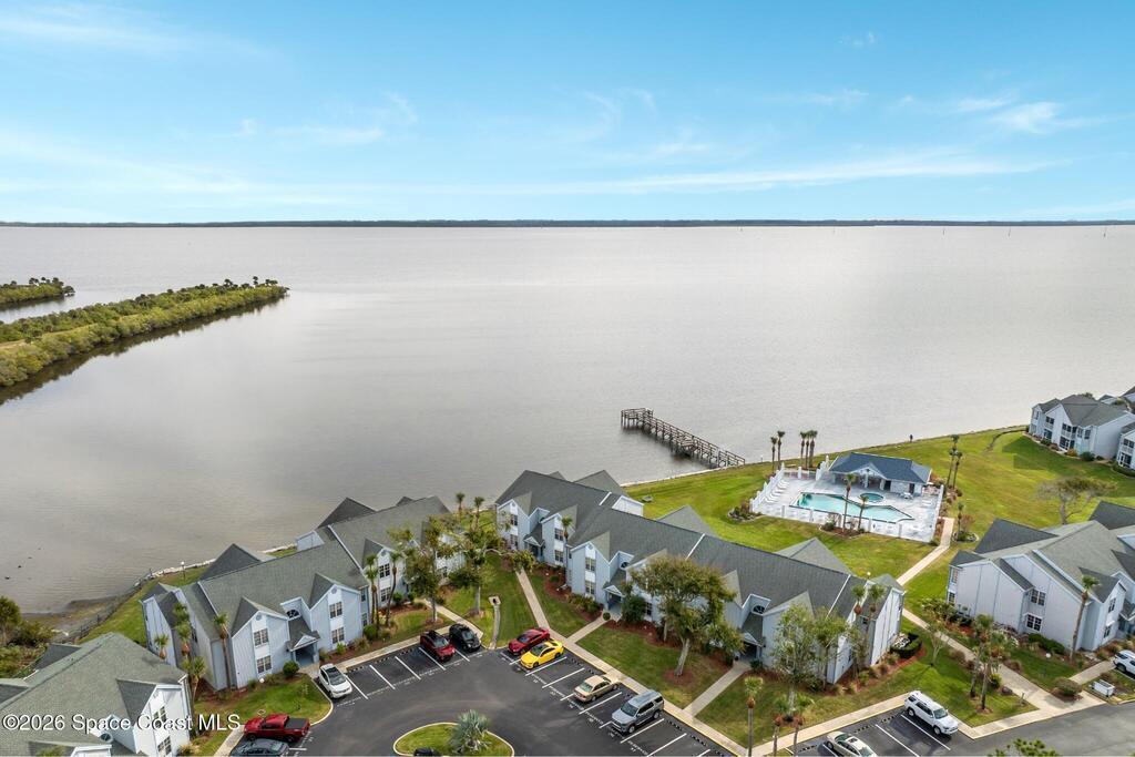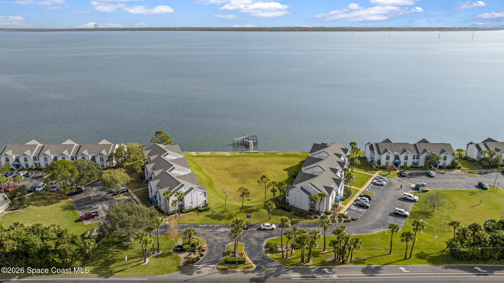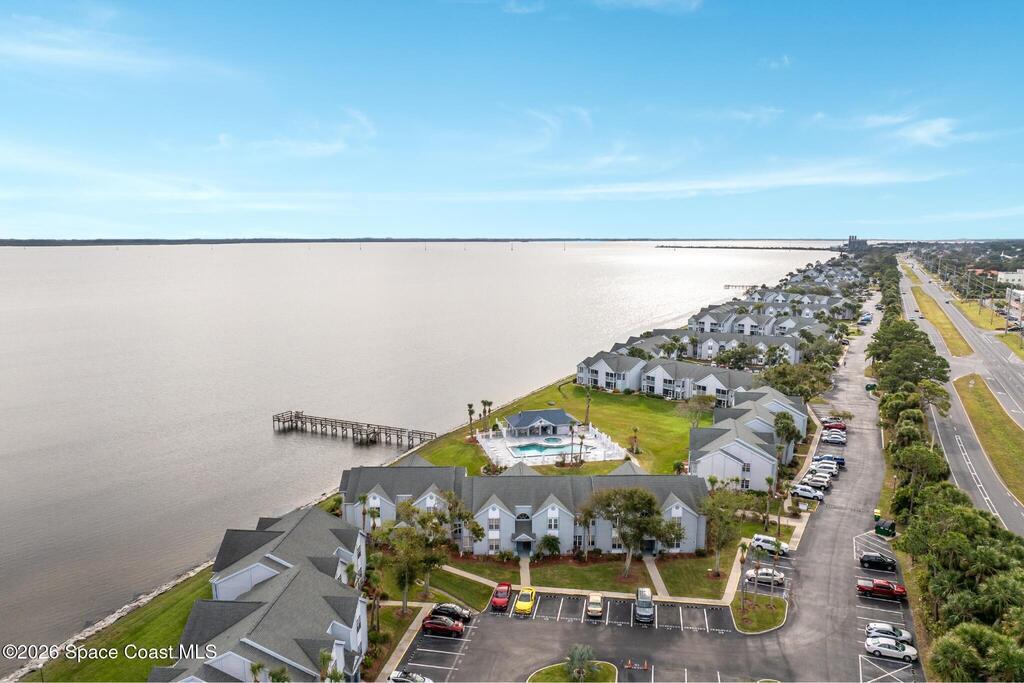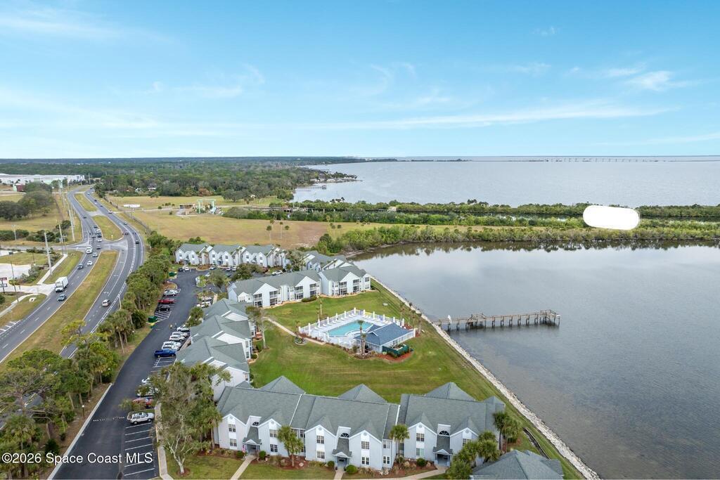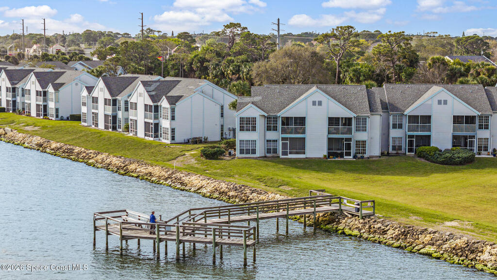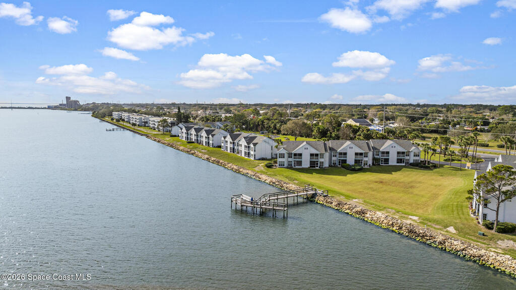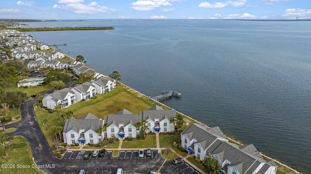 Nestled along the tranquil shores of the Indian River Lagoon, this beautifully updated first-floor end-unit condo offers captivating water views and a true coastal lifestyle. Wake up to shimmering sunrises, sip your coffee and watch dolphins and manatees glide by, and enjoy front-row views of iconic rocket launches--all from the comfort of your screened in waterfront patio.This spacious residence features 2 bedrooms plus a versatile flex room, ideal for a guest suite, home office, or fitness space, along with 2 full bathrooms and 1, 186 square feet of thoughtfully designed living space. Ground-floor living with no stairs provides ease and convenience.The coastal-inspired kitchen showcases quartz countertops, white shaker cabinetry with gray accents, stainless steel appliances, a stylish backsplash, and a soft-touch faucet--perfect for both everyday living and entertaining. Bamboo laminate flooring flows through the main living areas, while plush new carpeting enhances the bedrooms
