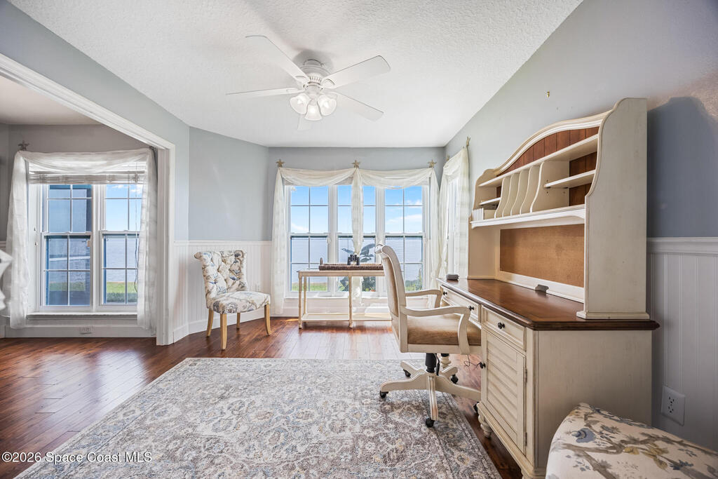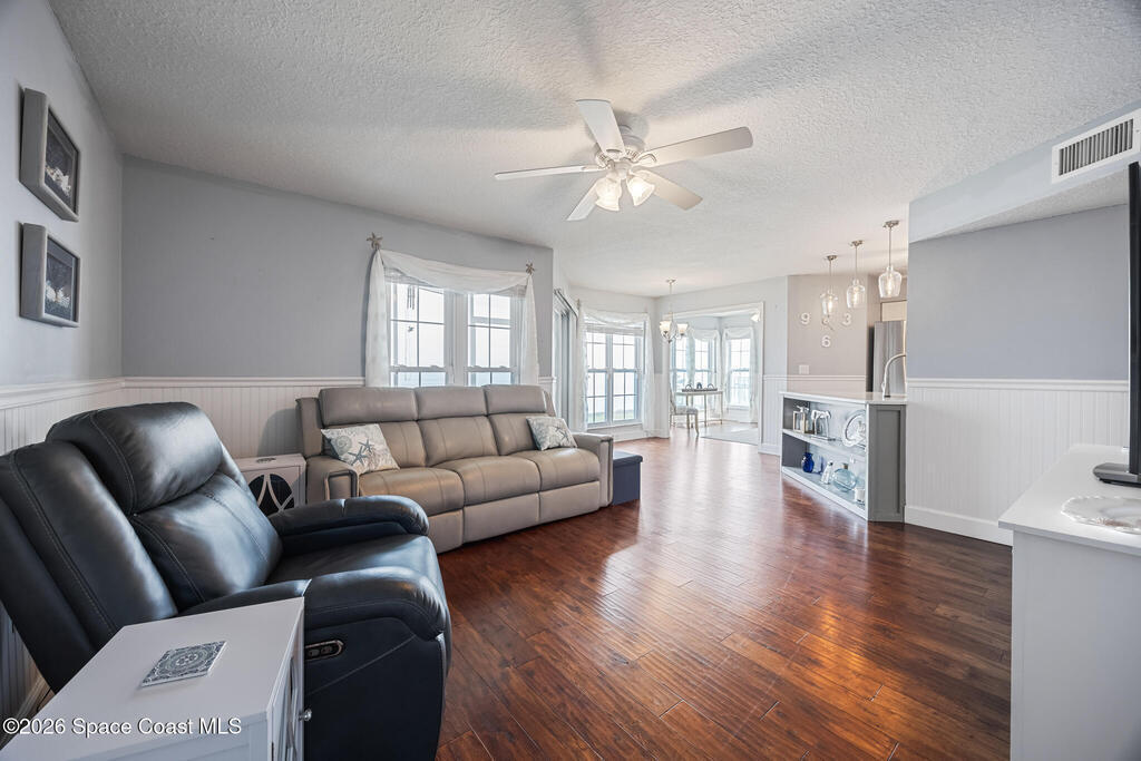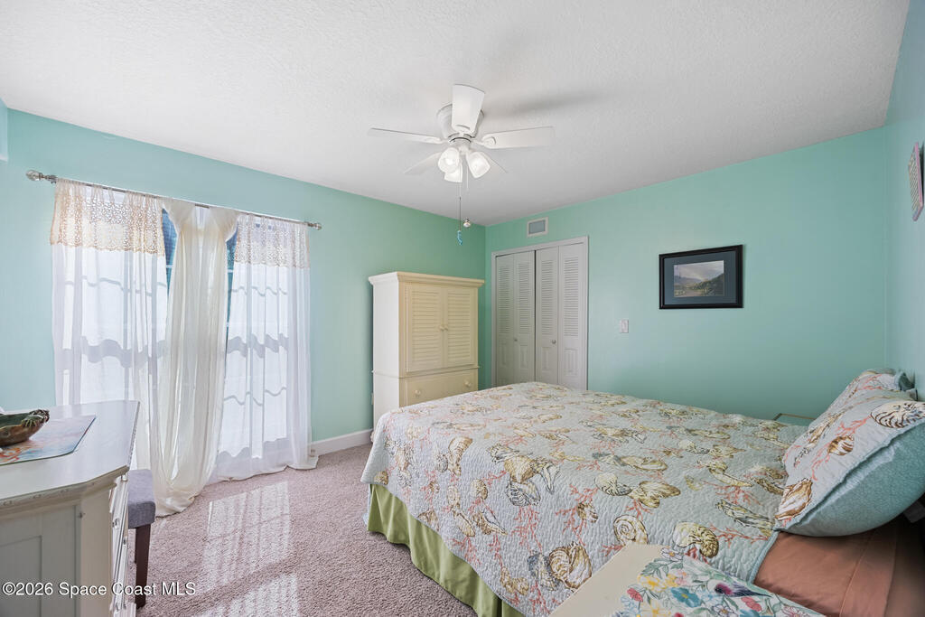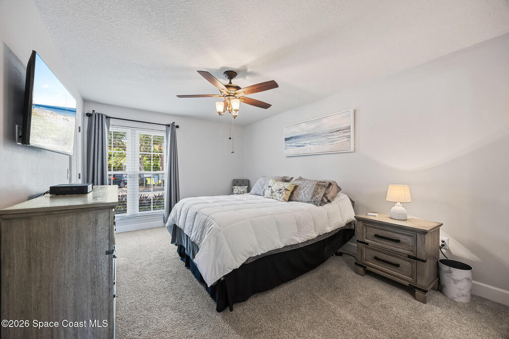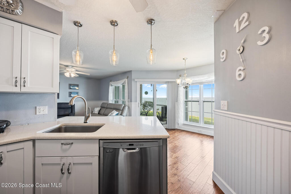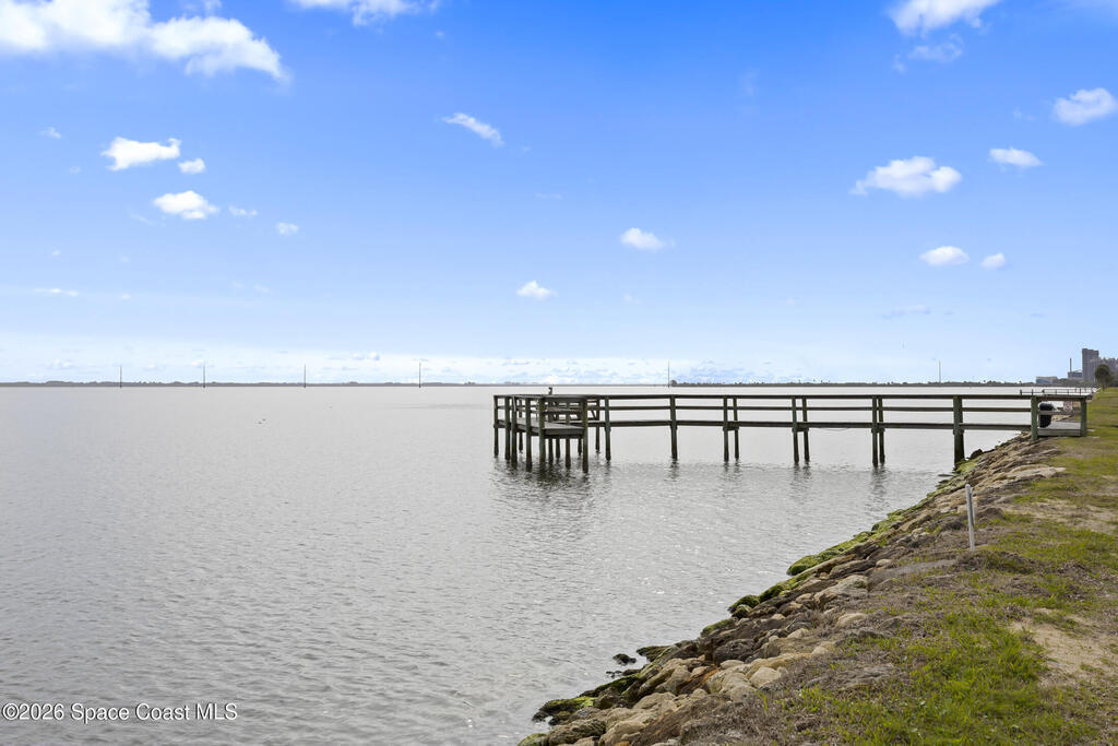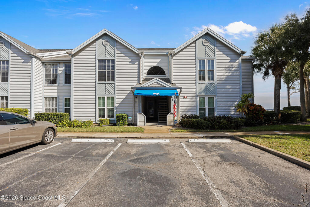 Nestled along the tranquil shores of the Indian River Lagoon, this beautifully updated first-floor end-unit condo offers captivating water views and a true coastal lifestyle. Wake up to shimmering sunrises, sip your coffee and watch dolphins and manatees glide by, and enjoy front-row views of iconic rocket launches--all from the comfort of your screened in waterfront patio.This spacious residence features 2 bedrooms plus a versatile flex room, ideal for a guest suite, home office, or fitness space, along with 2 full bathrooms and 1, 186 square feet of thoughtfully designed living space. Ground-floor living with no stairs provides ease and convenience.The coastal-inspired kitchen showcases quartz countertops, white shaker cabinetry with gray accents, stainless steel appliances, a stylish backsplash, and a soft-touch faucet--perfect for both everyday living and entertaining. Bamboo laminate flooring flows through the main living areas, while plush new carpeting enhances the bedrooms
