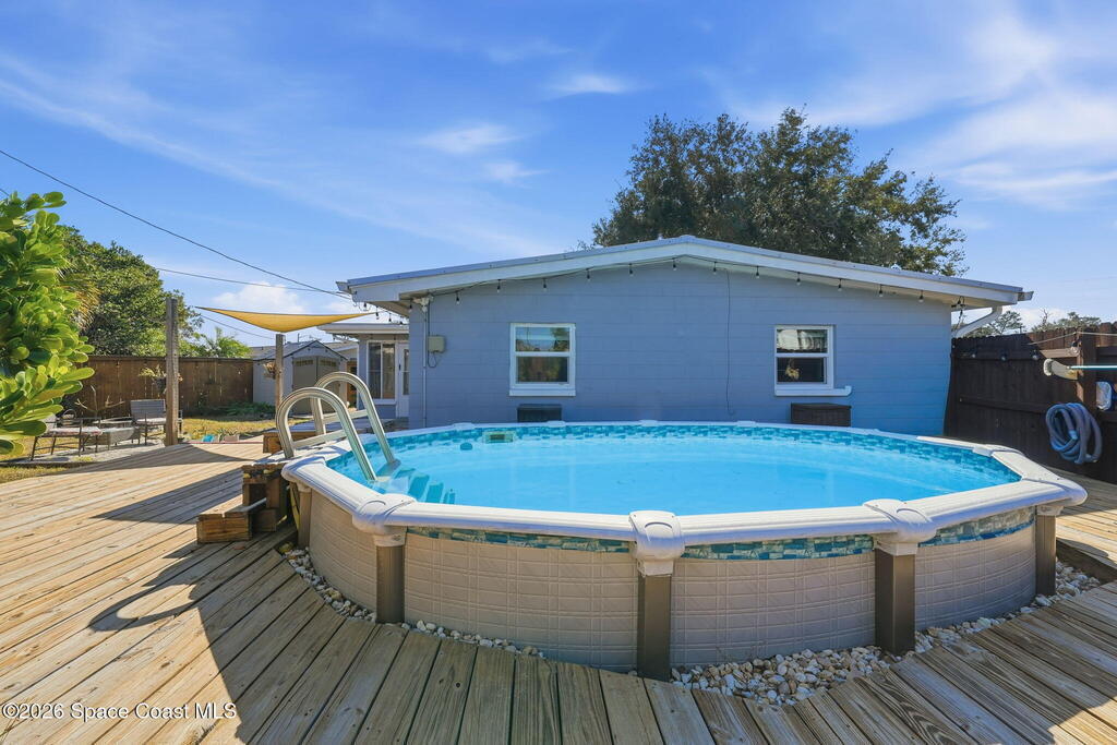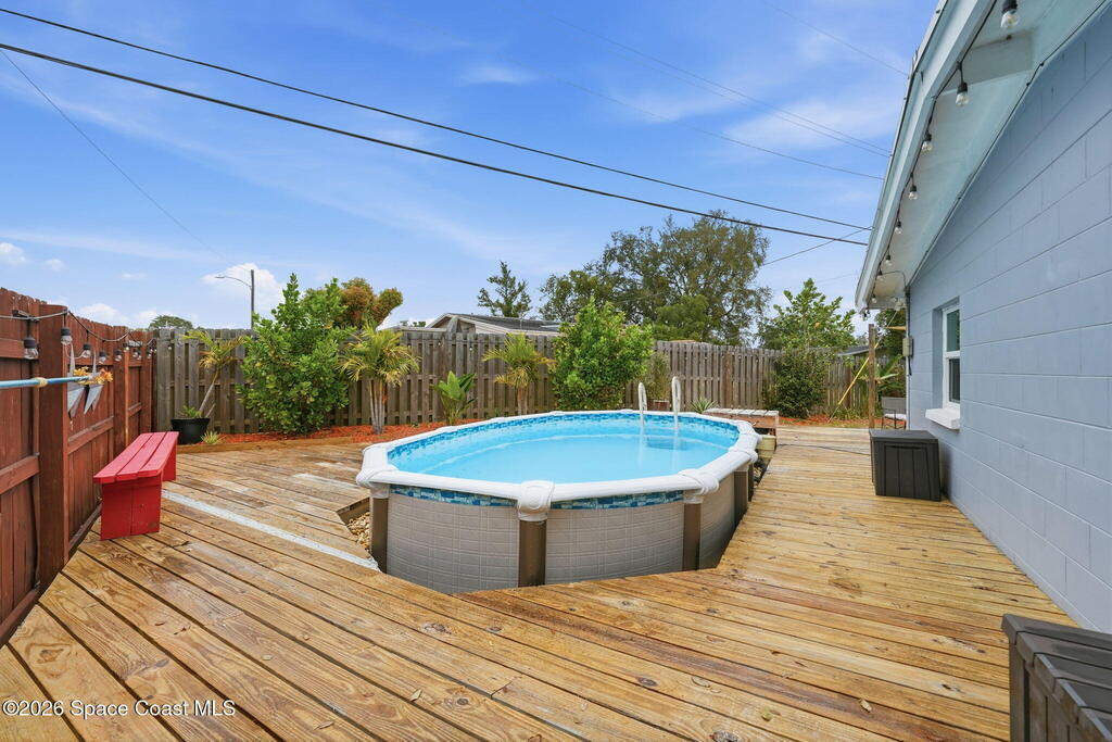 This Move in ready One of a Kind Magnificent Pool Home that a Corner Property Featuring 3 Bedrooms, 3 full baths. Beautiful Fence in back yard and deck where you can watch all the rocket launches in the privacy of your new incredible back yard. Home Comes with many updates Metal Roof, Hurricane Windows, Hot Water Heater AC, Wood Ceramic Tile Flooring throughout Close to all shopping, Schools, main roads and the Beaches. Waiting for your approval. Why wait to come see ?