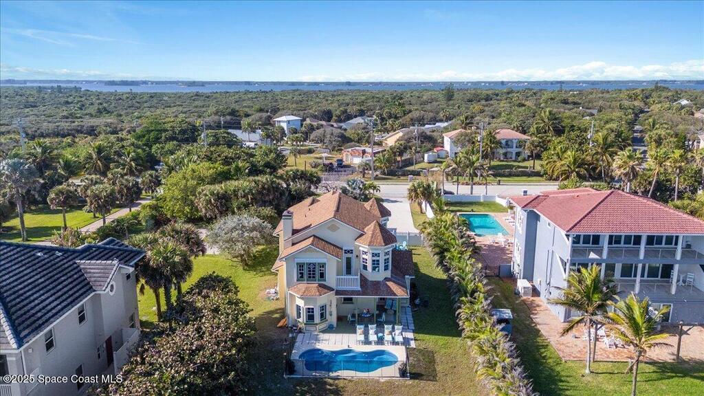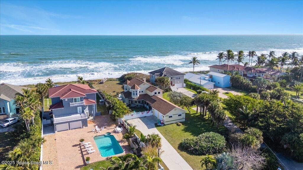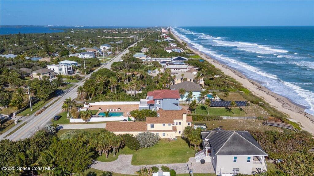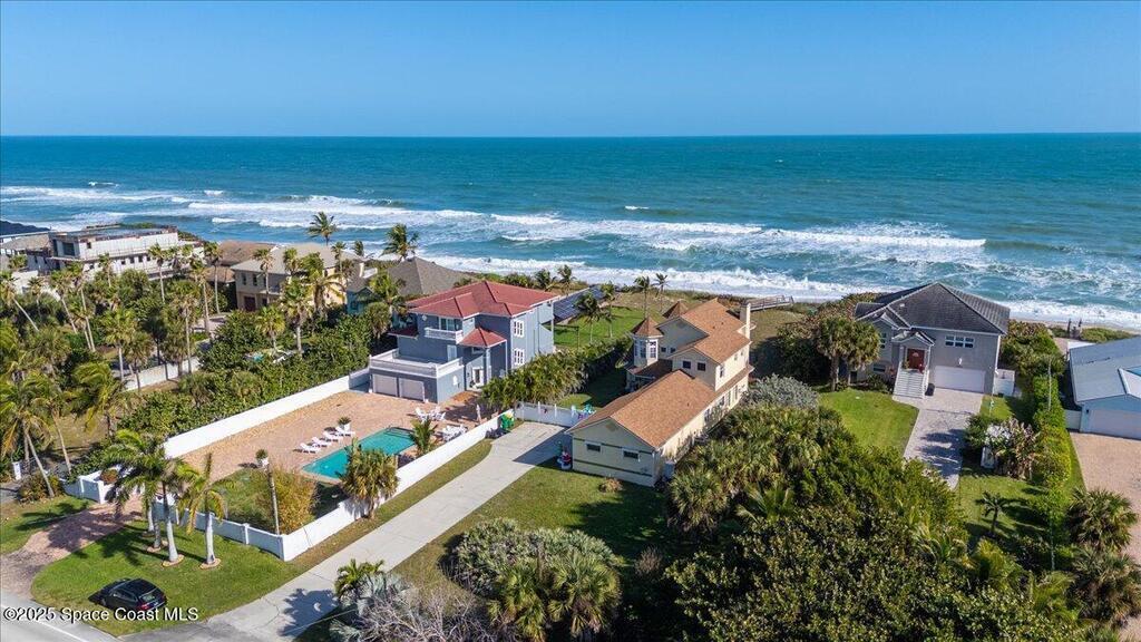 As seen on The DIY Network's The Vanilla Ice Project. Welcome to a rare Melbourne Beach opportunity--set on one of the largest oceanfront parcels in the area, this coastal retreat pairs timeless beachside living with modern comfort and tech-forward conveniences. A new roof, 2 new HVAC units in 2023, and a 2018 saltwater pool create peace of mind from day one. Inside, the home feels bright and uplifting with 10' ceilings, airy natural light, and a layout designed to embrace the ocean lifestyle. With 4 bedrooms and 3.5 baths, the floor plan offers flexibility, while multiple exterior doors make it effortless to step outside for sunrise coffee, sunset strolls, or breezy afternoons by the water. The first-floor primary suite provides added versatility, complete with a bonus ''Morning Kitchen'' or workstation area--well suited for a private guest suite or in-law setup. Upstairs, built-ins and a wall of windows frame sweeping panoramic ocean views you won't find anywhere else.