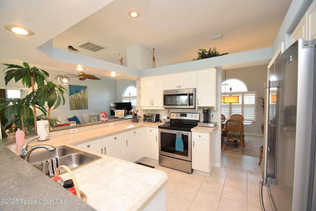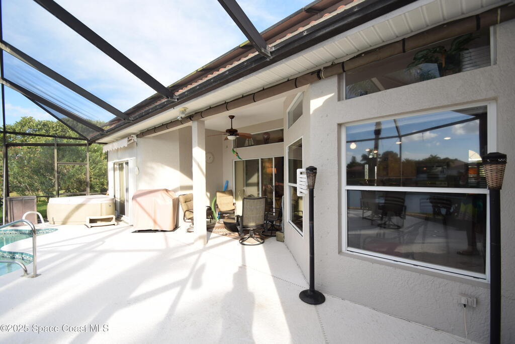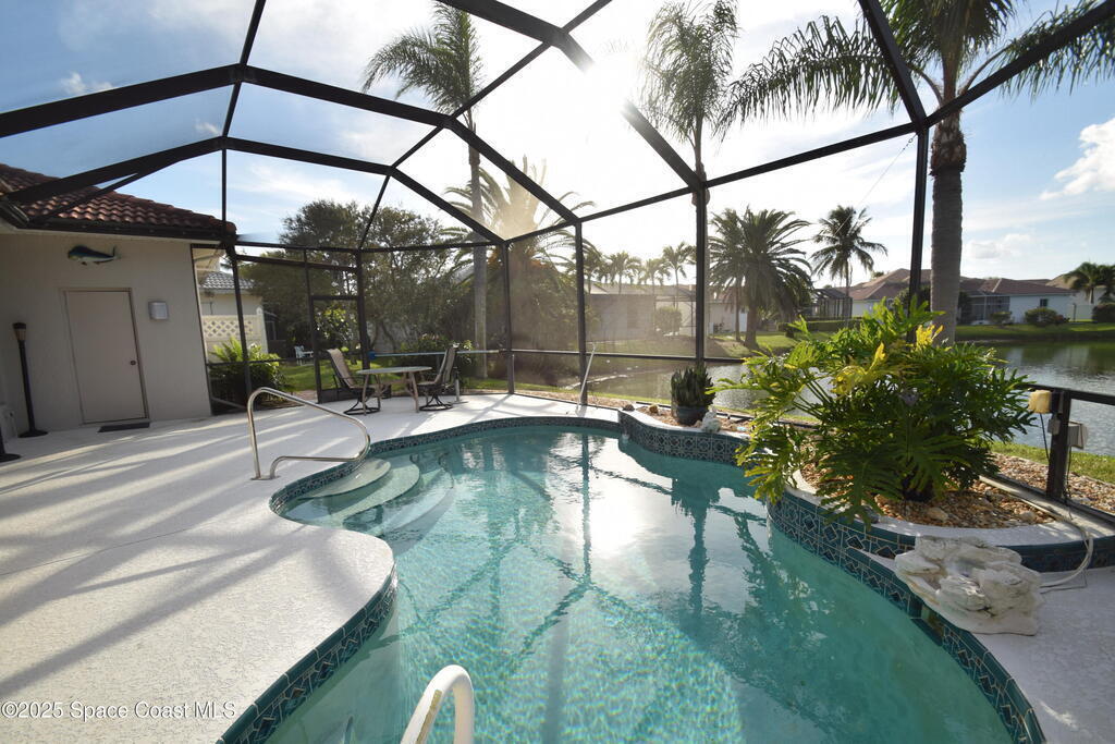 Welcome Home to Melbourne Beach FL, Ocean Ridge II of Brevard! A gated community with a nature preserve welcoming entry! Enjoy the ocean breeze by the screened in pool oasis with your relaxing direct view of the beautiful lake! This home is the perfect size offering 3 spacious bedrooms, split bedroom design, an Amazing family room with dining room, an OPEN PLAN concept. The well designed Kitchen features a step up breakfast bar that opens to the breakfast nook with picture perfect views! A large owners suite has a slider door access to your pool oasis and separate hot tub! Enjoy dual closets, a large vanity and separate tile shower & soaking tub. Other features: Tile flooring, ceiling fans, brick paver driveway, FULL SOLAR on both home and pool - HUGE SAVINGS on your monthly energy costs! Gorgeous leaded glass front door with side-lights, slider door access to covered porch / pool area. The guest bath offers a pool door access too! The oversized 2 car garage 22 x 22! A MUST SEE!