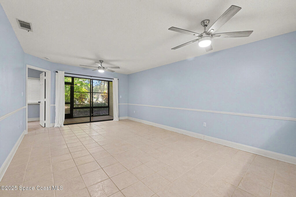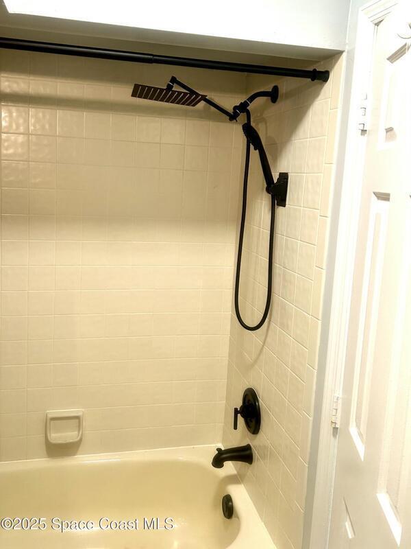 RENOVATED Club Hacienda Condos first floor one bedroom two bath condo - Club Hacienda Condos complex right on the La Cita golf course! MANY updates including fresh interior paint, new hot water heater, new upgraded plumbing fixtures throughout, new smart fans with LED lighting & remotes, upgraded LED lighting, new bathroom vanity w/double sinks, new 2'' blinds & blackout window/door treatments, new smoke detectors, new upgraded rocker light switches & outlets throughout, new door hardward thoughout & new combo keyless entry way lock!! Kitchen area w/new appliances, stackable washer/dryer unit, full bathroom off living room, open living room/dining room area, screened porch & bedroom with en-suite bath. Perfect central Titusville location - close to shopping, dining, churches & more! Resort like amenities - lovely inground community pool with summer kitchen area & tennis courts! Condo fees include water, sewer, trash, pest control, cable & internet. AHS WARRANTY for 1 year included!