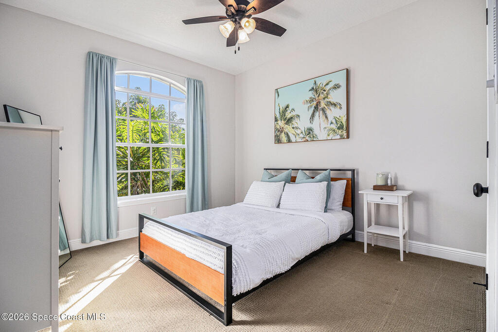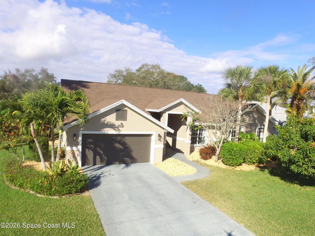 Elegantly set along the 17th hole of The Savannahs Golf Course, this 4-bedroom, 2.5-bath residence offers serene golf course and nature sanctuary views within one of Merritt Island's most desirable communities. A thoughtfully designed floor plan welcomes you with formal living and dining rooms accented by vaulted ceilings, creating a bright and sophisticated atmosphere.The expansive kitchen serves as the heart of the home, featuring Corian countertops, stainless steel appliances, abundant cabinetry, and an open flow ideal for entertaining. The adjacent family room showcases a wood-burning fireplace and panoramic views of the fairway and backyard, blending comfort with timeless elegance. The primary suite is a private retreat with double sinks, a walk-in shower, Jacuzzi tub, and spacious walk-in closet. Outdoors, enjoy peaceful mornings and sunsets surrounded by mature landscaping, and local wildlife. This home offers refined Florida living in a premier golf course setting.