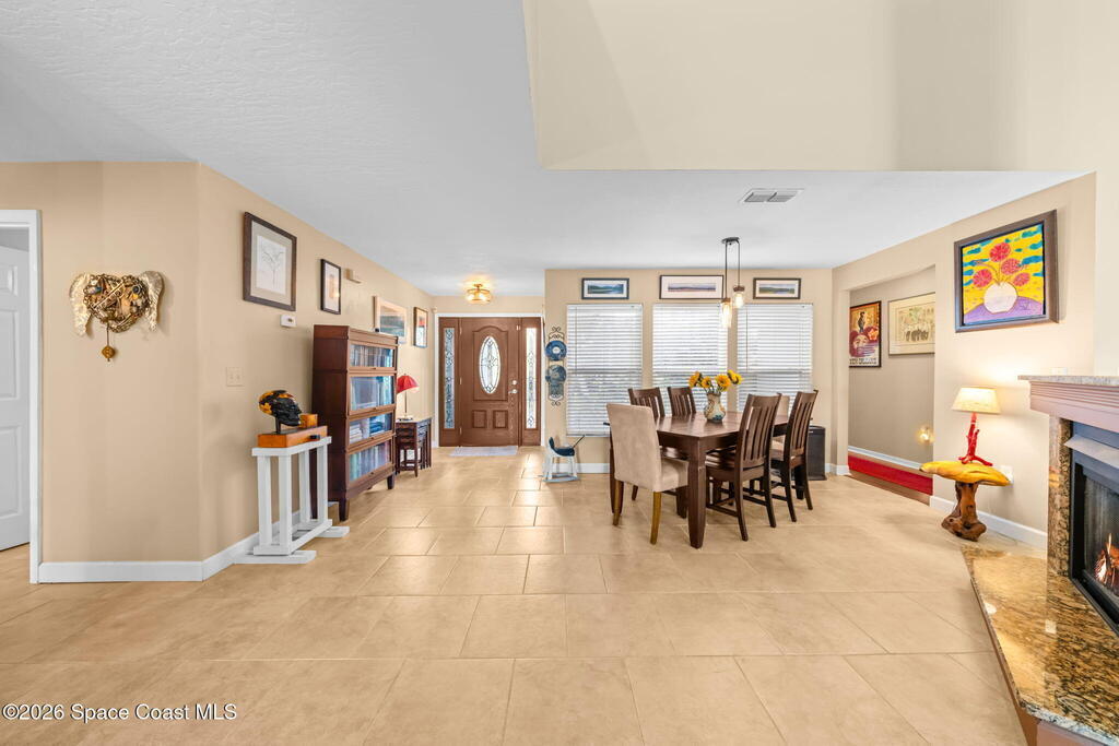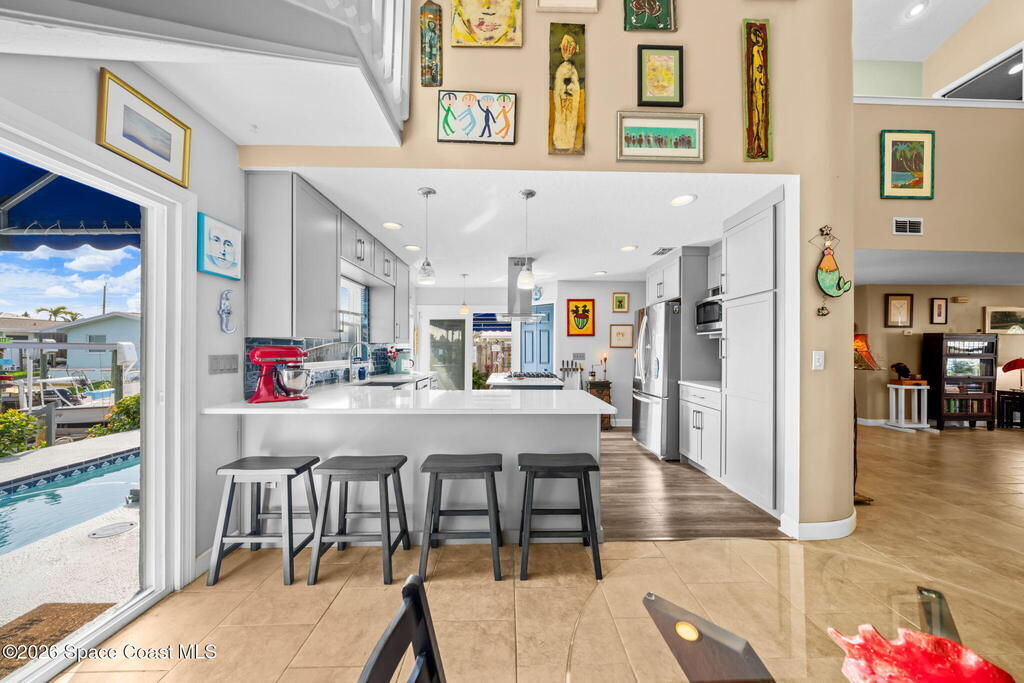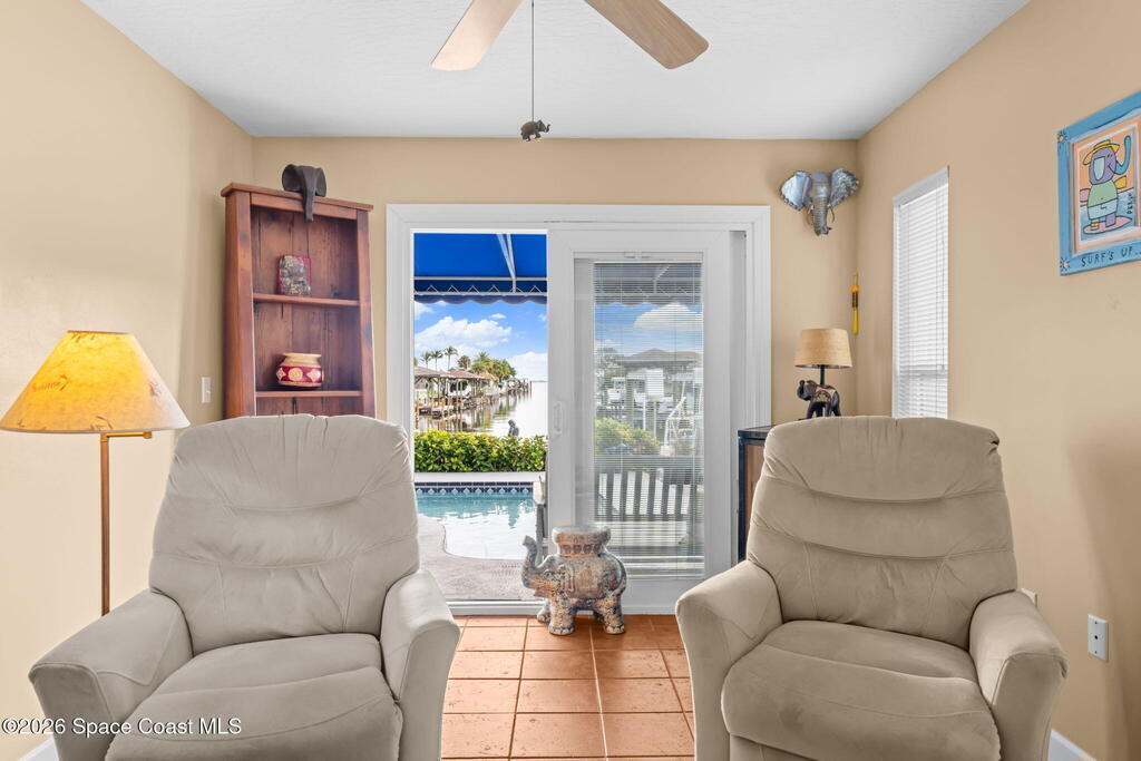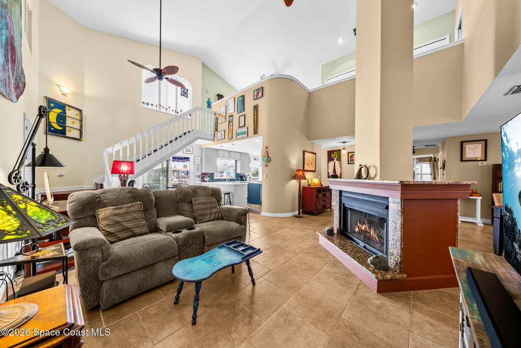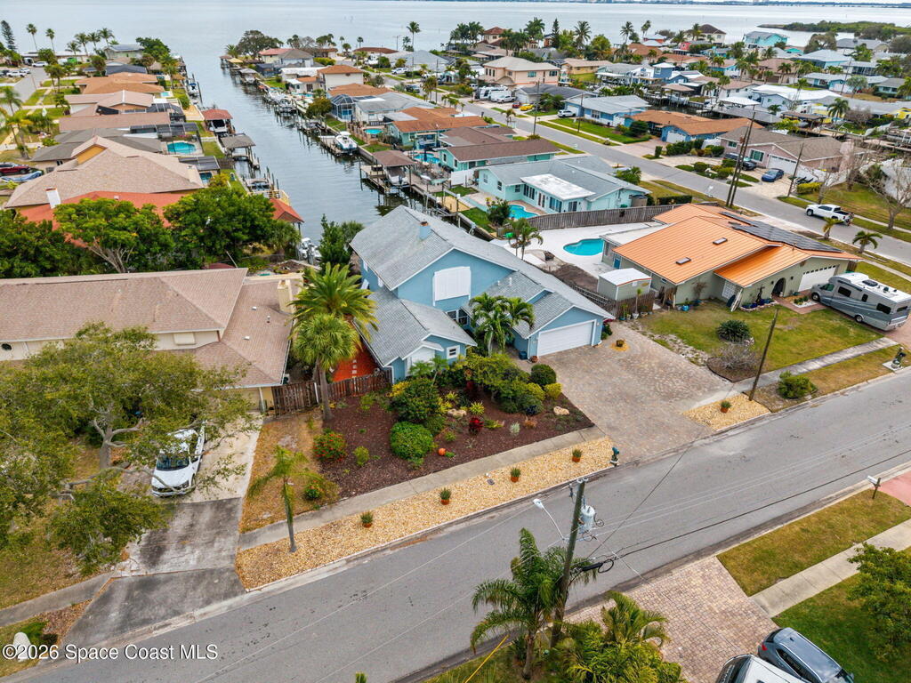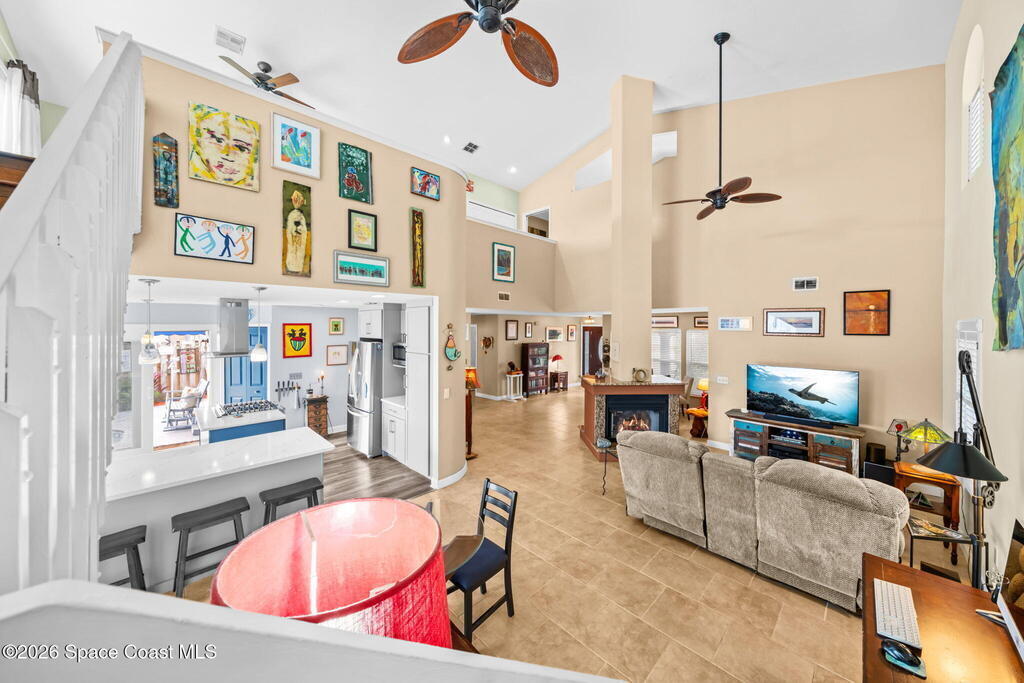 Enjoy breathtaking sunrises and long-range water views! Navigable deep water direct to the Banana River with no bridge restrictions. New seawall in 2021. New roof in 2017. Flexible open floor plan with free-standing double-sided gas fireplace. If you love light. bright, airy spaces, this is the home for you! Recently redesigned kitchen with stainless steel appliances, shaker-style cabinets, soft-close drawers & cabinets, and quartz countertops. Primary loft suite w/private balcony & water views, jetted tub, separate walk-in shower, double sinks & walk-in closet. (Potential for a 1st floor primary suite with some modifications) All hard surface flooring throughout (no carpet). Tastefully landscaped front and back. Brick paver driveway. Bahama shutters. Relax pool side under your cozy tiki-hut while dolphin & manatees play right in your own backyard. This sought after location is mere minutes to Kennedy Space Center w/easy access to SR 528 & I-95.