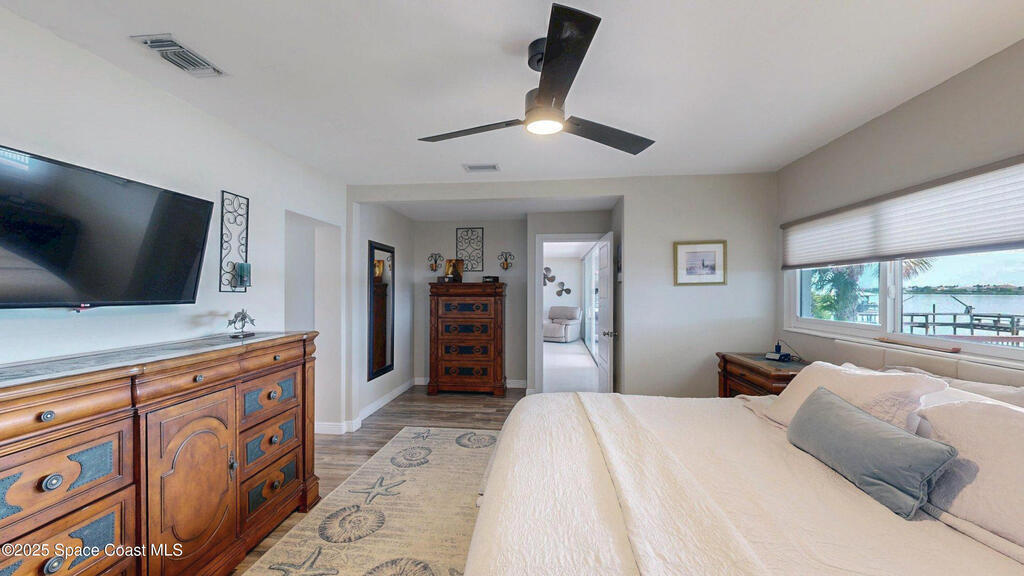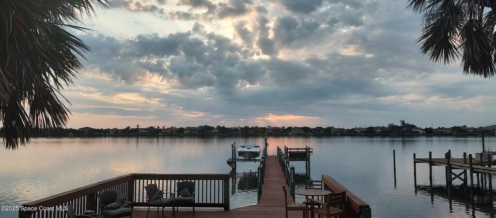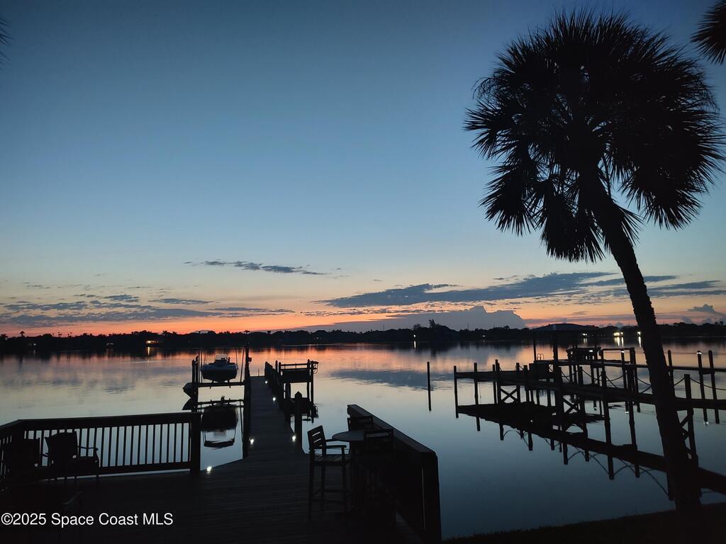 Breathtaking sunrises and sunsets await in this incredible River to River South Merritt Island Paradise Point Home. This completely renovated property is exceptionally sturdy, featuring a newer roof and impact windows throughout. It includes a dock equipped with an 8000 lb. lift. Generator inlet box, and is fully gated and fenced. There is no HOA, excellent drainage, a propane firepit, and a spacious laundry room. The third bedroom has been transformed into a game room. The kitchen boasts granite countertops, stainless steel appliances, and two separate sinks, while the expansive main bedroom includes his and her closets and huge shower. The home also features amazing refurbished terrazzo floors and a large trussed back porch, perfect for enjoying morning sunrises and relaxing in the shade during cool afternoons as the sun sets in front. Living on South Tropical Trail offers a lifestyle of tranquility, with no HOA and the privilege of residing on the finest street in Brevard.