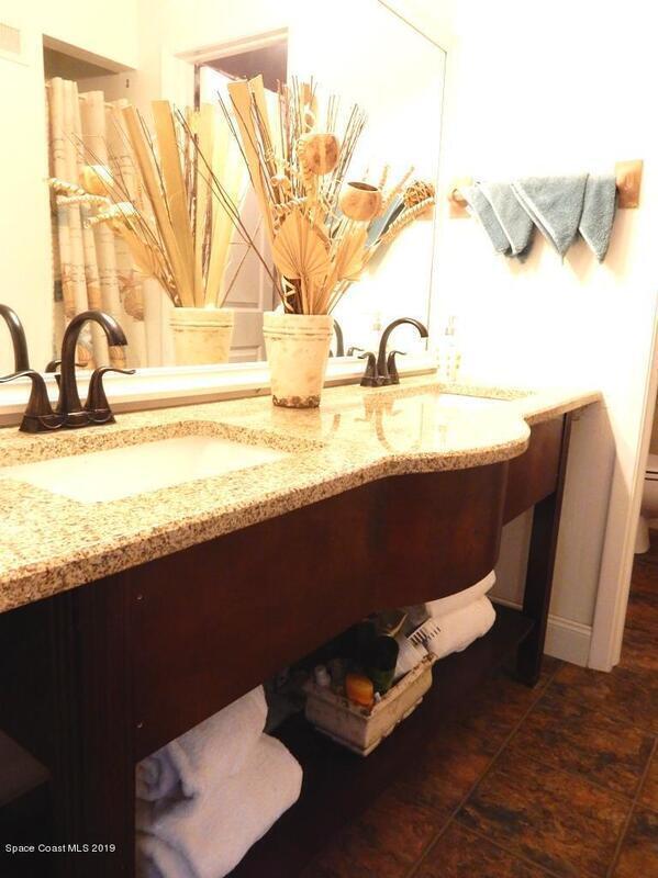 NEW ROOF ORDERED FOR THIS TOWNHOME. This lovely town home will steal your heart. Charming floor plan flows from room to room with sliding doors to a beautiful tropical patio. Tastefully decorated and finished with beautiful appliances and lovely lighting throughout. Creamy tile floors down and lush carpet upstairs. The pretty master bedroom has sliders to a deck that overlooks lush native landscaping. All this and lovely furniture and furnishings. Ready for occupancy and nesteled in this gated community where one can walk from the ocean to the river and enjoy 2 pools, tennis, pickleball, racquet and hand ball, bocce, fitness center, clubhouse and children's playground.Close to shopping, golf and good schools. Low association fee includes cable TV. Grab your bathing suit, sandals or golf clubs and start your Florida Lifestyle right away.