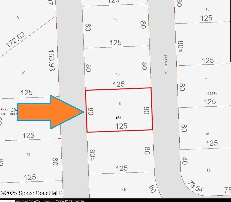 Here is a 0.23 acre buildable single family residential lot [Rs2 Zoning] available in Port Malabar Unit #32 of Palm Bay. This lot features a 2024 home adjacent and across the street from the property and has a drainage right-of-way easement canal in the back. Nicely located in the SW section near the Bayside Lakes Subdivision. this lot is just 3, 3 miles -9 minutes- to Publix Shopping, 2, 1 miles -5 minutes- to Bayside High and Westside Elementary Schools, and just 15.7 miles -35 minutes to the ocean at Indialantic. Malabar Road West, L on Garvey, L on Scenic, R on Satin