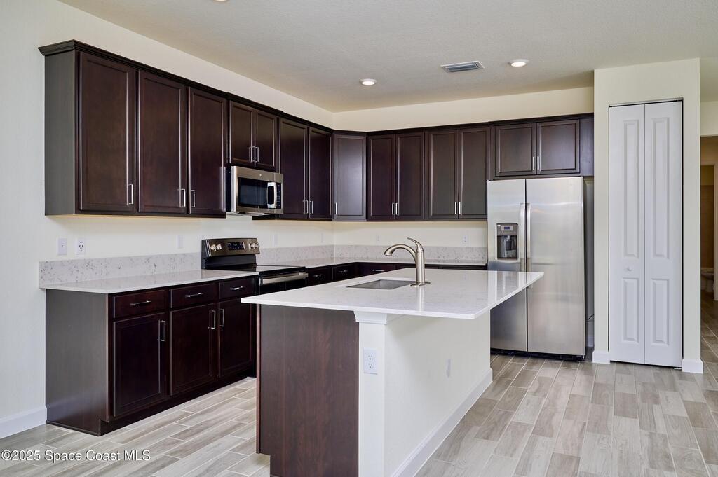 UNFURNISHED ANNUAL RENTAL AVAIL - Welcome home to this BEAUTIFUL 2020 BUILT 3/2/2 CBS HOME in desirable HUNTINGTON PLACE, a gated community of newer homes. Designed for today's lifestyle. This home features a bright SPLIT FLOOR PLAN with an inviting OPEN CONCEPT layout. The KITCHEN - truly the central hub of the home, showcases espresso cabinetry, quartz c/tops, SS appliances, island bar seats 4, pantry and an adjacent dining area w/large windows framing tranquil WATER VIEWS. SLIDERS open to a COVERED PAVERED LANAI and a pie shaped backyard overlooking pond/lake. BEDROOMSUITE offers 2 walk-in closets and large windows looking out to yard and water. Spacious ENSUITE BATHROOM w/walk-in shower, separate soaking tub, double vanity and private water closet. INDOOR LAUNDRYRM with Washer & Dryer. COMMUNITY AMENITIES: pool, fitness room, cabana bathrooms. RENT INCLUDES LAWN, LANDSCAPING. Minutes to shops, dining, golf, medical, island and BEACHES! EAT, PLAY, LIVE - VERO BEACH!
