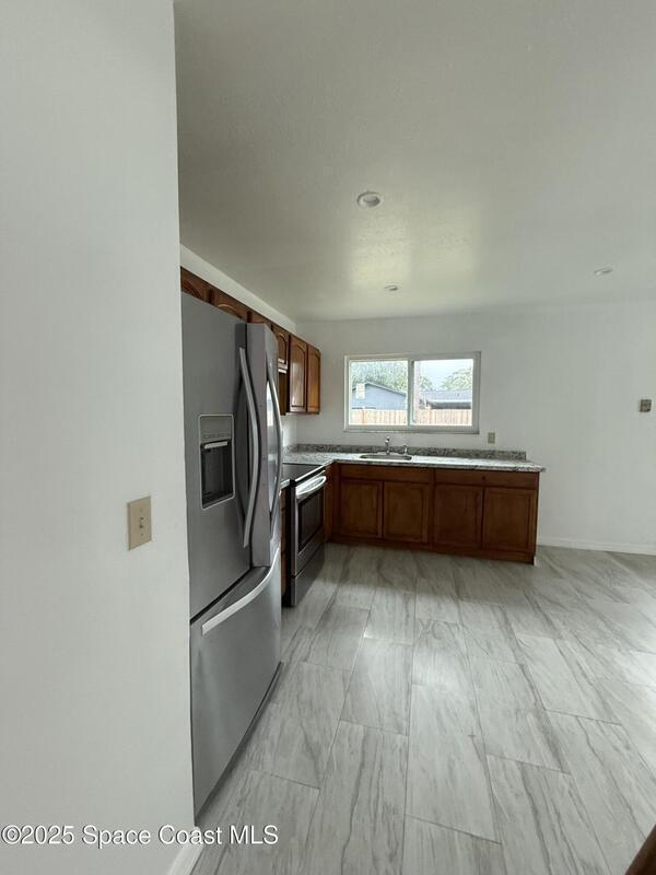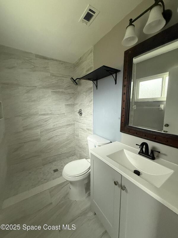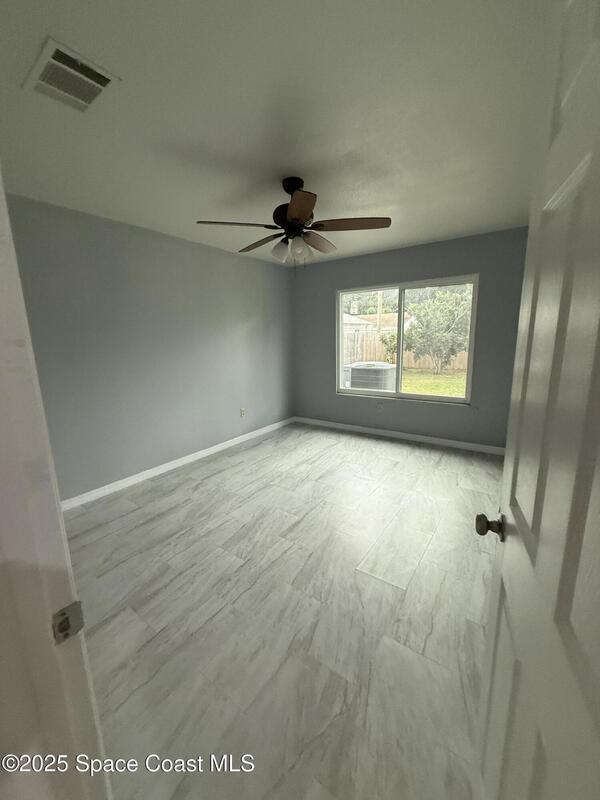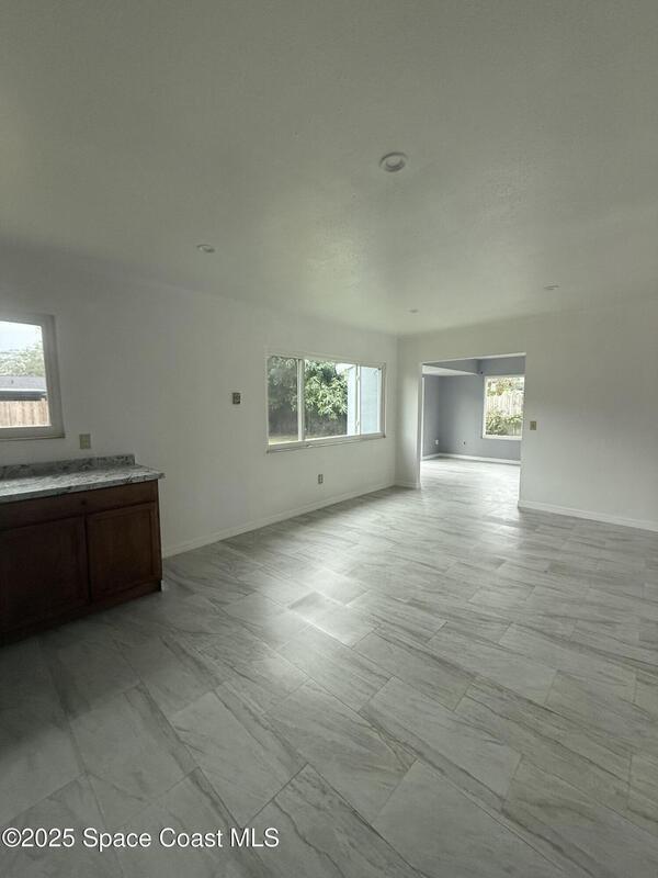 Welcome home to this well-maintained 3-bedroom, 2-bath single-family residence with a one-car garage, conveniently located in SE Palm Bay. This move-in-ready home features fresh interior paint, updated flooring, and newly renovated bathrooms. The open living area flows into a functional kitchen and dining space, creating a comfortable and practical layout. Enjoy a spacious, fenced backyard, perfect for outdoor living, pets, or future enhancements. Centrally located near shopping, dining, schools, and major roadways. No HOA. FHA, VA, and conventional financing welcome. Schedule your private showing today.