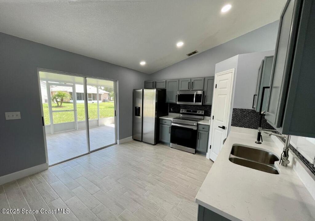 Beautiful Turn Key home in the highly desirable Sandy Pines Neighborhood! Stunning Remodel-All Plank ceramic tile, Quartz Counters, Appliances, all plumbing fixtures, light fixtures, doors and trim, door handles, blackout drapes, ring doorbell, and paint inside and out! Hurricane Windows !! Ready to move in! Tiled, screen patio. Spacious eat in Kitchen with all new Appliances and smart oven with air fry, Stainless Steel refrigerator Vaulted ceilings and designer fans in every room. spacious great room, 2 car finished garage. Enjoy the community pool and Low HOA fee. Even includes washer and dryer! Save on insurance! City Water and Sewer! Excellent location, near shopping, great restaurants, beach.