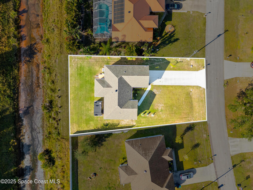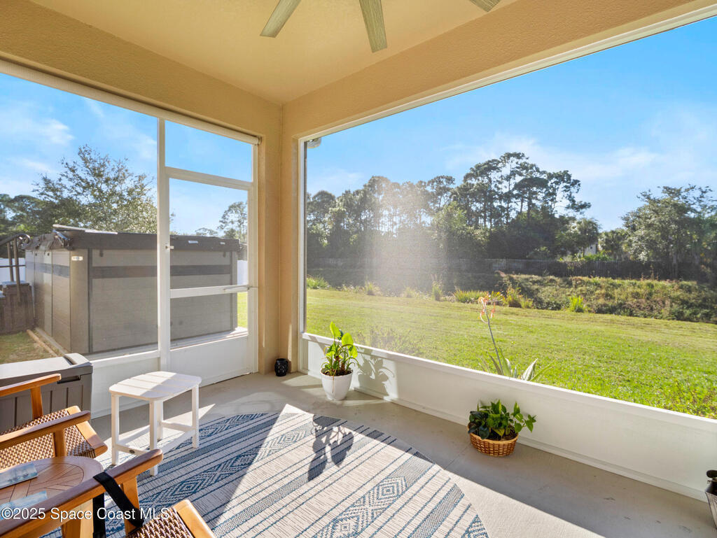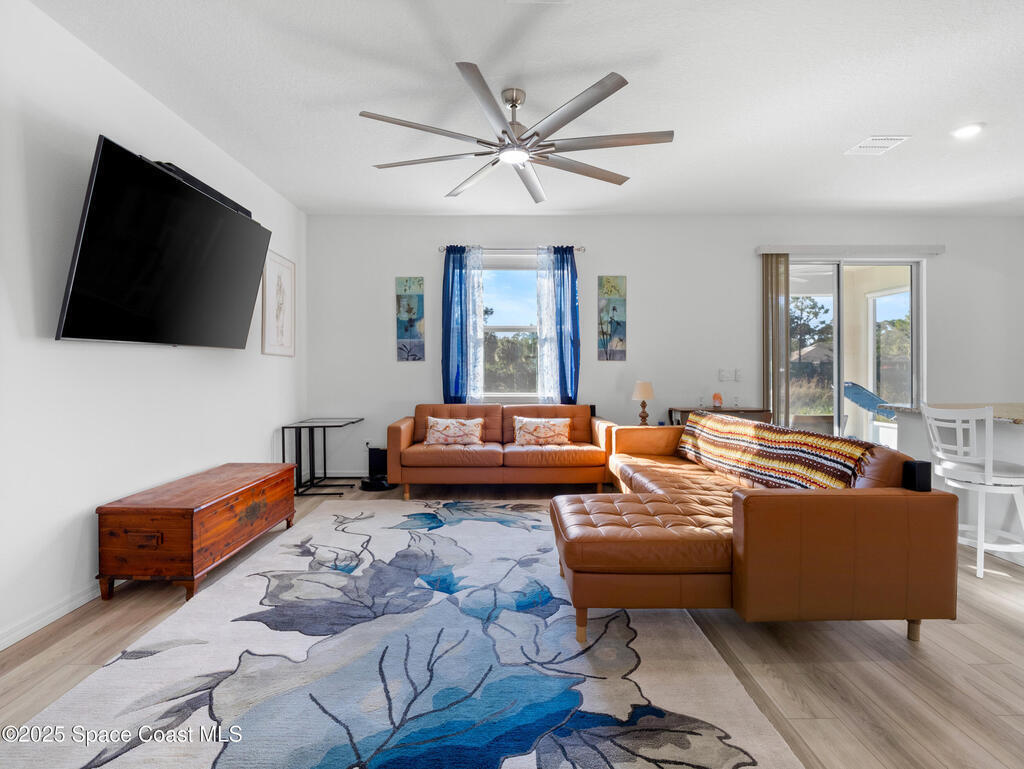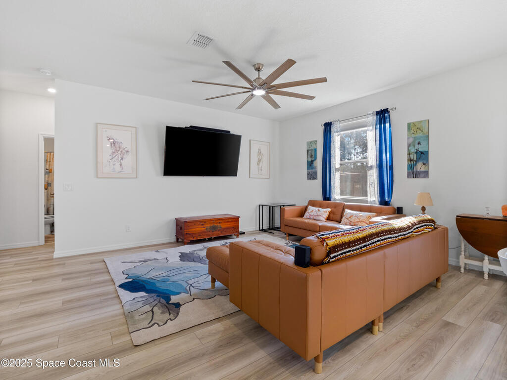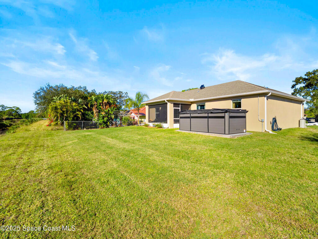 Step into modern comfort with this stunning Clearwater model home, completed in 2023 and situated on an expansive quarter-acre city water lot in the heart of Palm Bay. This residence perfectly blends style and functionality with an airy open-concept layout where the spacious great room flows seamlessly into a gourmet-inspired kitchen. At the center of the home, a large prep island serves as the perfect gathering spot, surrounded by sleek cabinetry and high-end Whirlpool appliances. The smart split-bedroom design ensures a peaceful retreat, highlighted by a private owner's suite with a generous walk-in closet and a spa-like bathroom. Crafted for longevity, the home features durable concrete block construction, energy-efficient Low-E windows, and storm shutters. Located in the desirable Port Malabar community, you will enjoy the freedom of no mandatory HOA fees while staying minutes away from the vibrant shopping and dining at Bayside Lakes. REACH OUT TODAY TO SCHEDULE A PRIVATE SHOWING