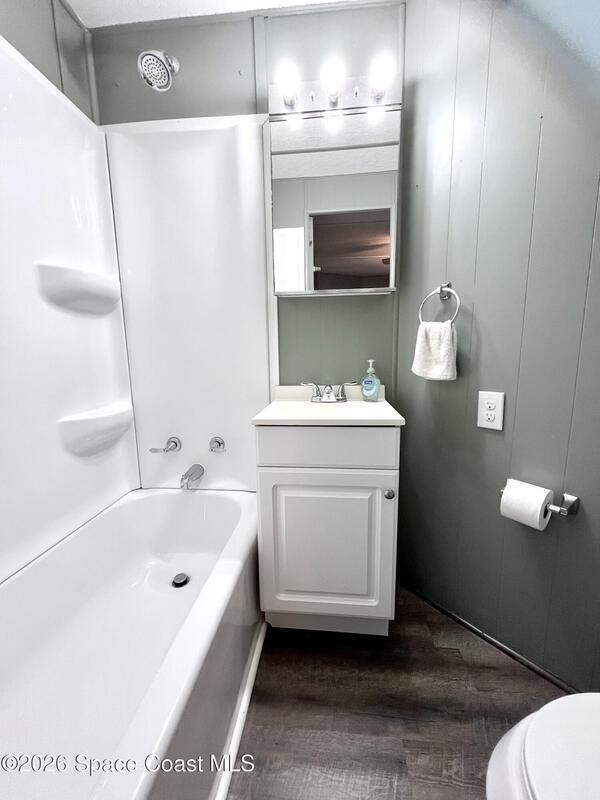 Welcome Home! This 2 bedroom, 2 full bath home was remodeled in 2020, this home offers upgrades such as granite countertops, soft close cabinetry, vinyl siding and double pane windows. The fully fenced, spacious backyard is perfect for entertaining, pets or just enjoying some quiet outdoor time. The backyard also offers a garden shed with electricity. Large carport and an 11X25 bonus room with laundry hook ups and AC. AC is 2020. NO LOT RENT!